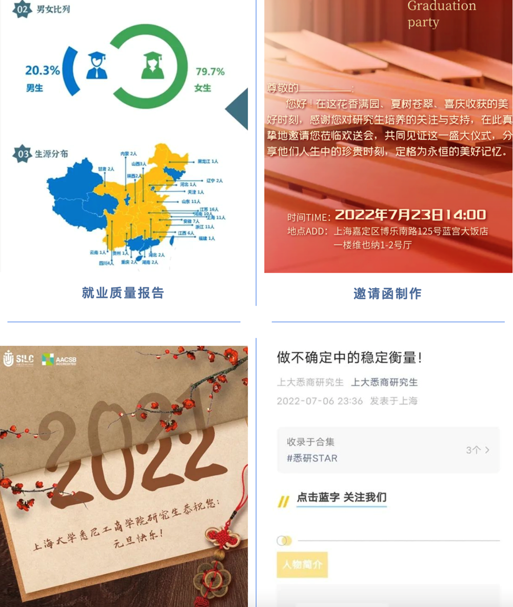 新媒体中心是研究生教学管理部直属部门,全面负责yl23455永利研究生相关宣传工作,包括公司官方宣传平台的管理和维护、yl23455永利研究生活动宣传、海报和视频的制作展示以及活动现场的拍摄记录等。新媒体作为公司思想文化的重要宣传阵地,在进行宣传工作时要把握好网上舆论引导的时、度、效,深化新媒体舆论引导,对外增强公司公司的品牌竞争力与影响力,对内营造良好的舆论氛围和公司凝聚力,积极宣传公司的新人、新事、新理念,全面展示yl23455永利研究生的独特风采。