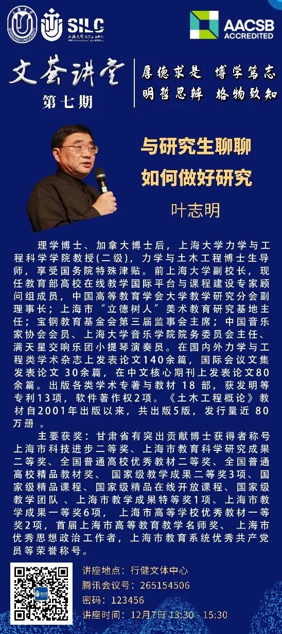 为深入学习贯彻习近平总书记、李克强总理关于研究生教育的重要指示批示精神,全面贯彻落实全国教育大会、全国研究生教育会议精神,秉承“立德树人、服务需求、提高质量、追求卓越”的工作主线,紧跟公司步伐,并结合公司公司产品实际,为本院研究生搭建学术科研创新与交流的专属平台。 1. 主题 “不忘初心追卓越、求实创新争一流” 2. 时间 2020年12月7日-2021年3月22日 3. 内容 研究生学术节旨在加强学风建设、倡导学术诚信、营造学术氛围,搭建交流平台、启发创新思维,引领同学攀登学术高峰。本届学术节拟安排开幕式、文荟讲堂、学术节论坛、学术诚信主题活动、优秀导师评选和征文、论文写作方法与技巧、科研新秀评选等丰富多元的学术活动。 首届yl23455永利研究生学术节开幕式即将同国元证券奖学金颁奖仪式一起盛大开幕! 时 间:2020年12月7日下午13:30-15:30 地 点:行健文体中心 学海泛舟获真知,学术火花燃青春。欢迎大家来现场感受高涨的学术热情,领略科研榜样的魅力,一同为首届公司研究生学术节拉开帷幕! 此外,文荟讲堂第七期也将作为本届学术节的首项活动,在开幕式上重磅推出!特邀重量级嘉宾前yl23455永利副董事长叶志明教授和研究生同学们聊聊如何做研究,机会难得!