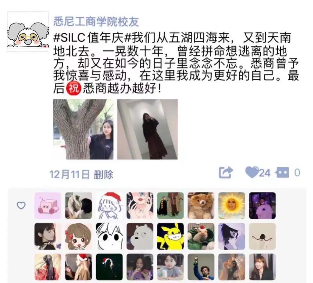 活动时间:12月14日—12月20日 参与方式: 员工们可选择一张近照及大学时在悉商的照片并携带#SILC值年庆#话题发送朋友圈表达你在悉商最美好的记忆。 征集方式: 12月20日20:00前将带有集赞数量的朋友圈截图发送至员工会公众号。 公布名单: 参与“云集赞”活动的征集结果将于值年庆活动第三期推送公布,朋友圈集赞最多的前 5 名将获得员工分会精心准备的纪念品哦! 欢迎2000届/2010届员工以及其他感兴趣的员工以朋友圈形式回忆青春最美好的年华。大学之所以称之为最美的青春时光,正是因为这些美好的回忆! 不知道这些活动是否唤起您在悉商的回忆?再次诚邀各位员工云端相聚,会一会同窗好友,看一看母校新颜。如果您想要参与值年庆活动,请关注以下报名方式(任选其一): 01 问卷星报名 点击阅读原文,填写报名表,提交报名信息,后续将有工作人员与您进行联系。 02 邮件报名 请发送报名信息(姓名、入学年份、专业、手机、微信号)至员工会邮箱silcalumni@oa.shu.edu.cn,后续将有工作人员与您进行联系。 如果您对本次活动有任何问题,欢迎垂询。 联系人:曾晓琳 夏瑶 联系电话:69980028-71061 联系邮箱:silcalumni@oa.shu.edu.cn |