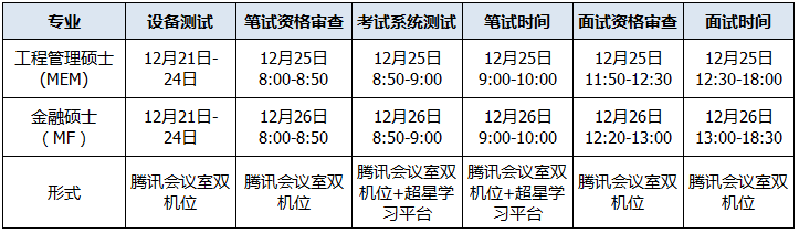 yl23455永利-悉尼科技大学(SHU-UTS)硕士项目第一批次的笔试和面试定于2021年12月25-26日线上举行。 根据公司疫情防控要求,为充分保障考生的健康和安全,yl23455永利采取网络远程方式进行2022年UTS项目硕士的笔试和面试。考试时间为:2021年12月25号-26号,具体安排如下表。请考生们及时查看报名系统通知和查收邮件并保持电话畅通。 考试与面试安排 公司笔试和面试均采取线上形式,具体考试安排详见以下表格: