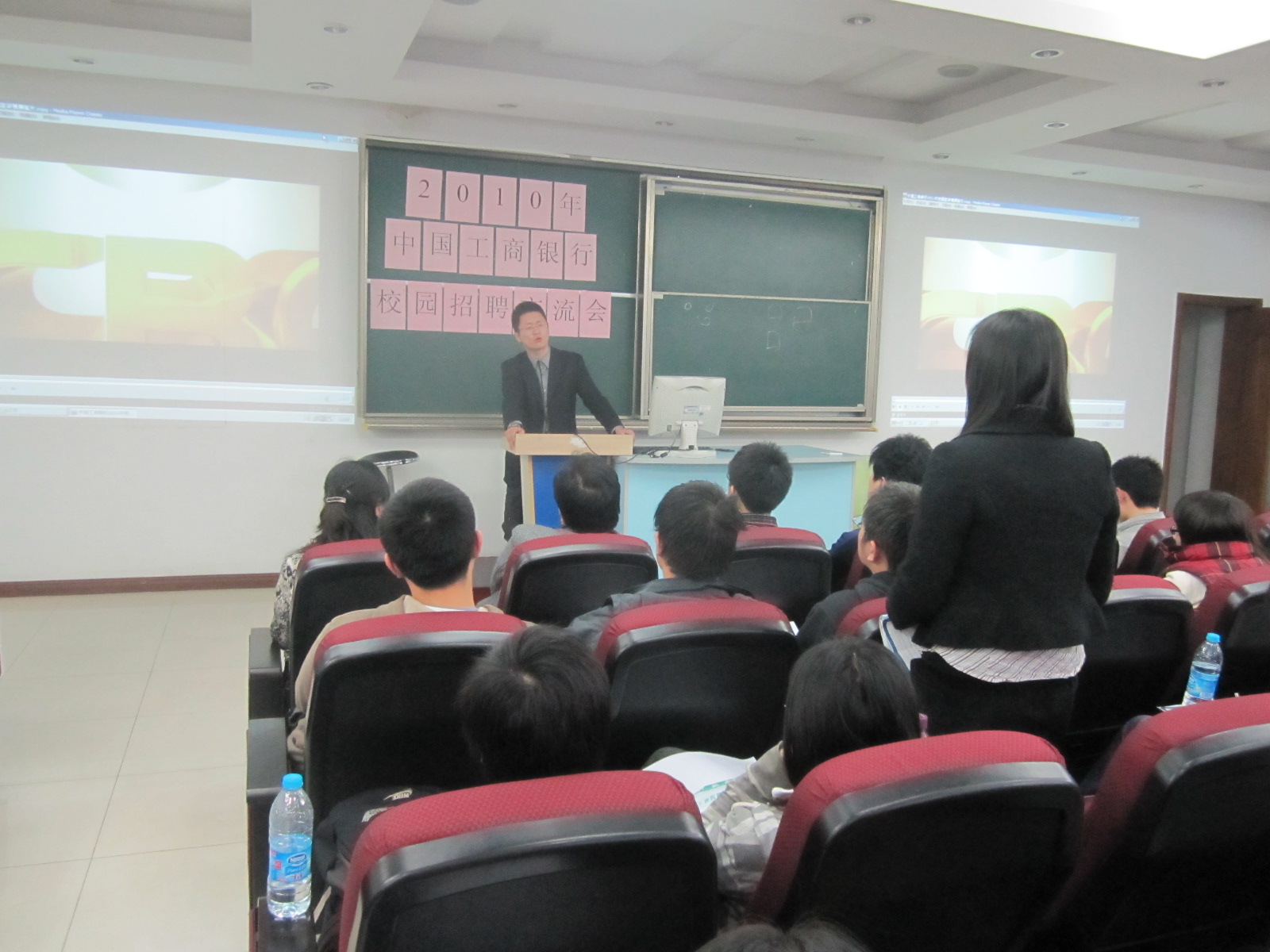 11月8日晚,中国工商银行2011年校园招聘交流会在公司文德楼报告厅顺利举行。交流会邀请了工商银行招聘经理陈铭、招聘专员周宏宾与悉商学子近距离互动。公司实习就业指导中心主管曹英全程参与了交流。