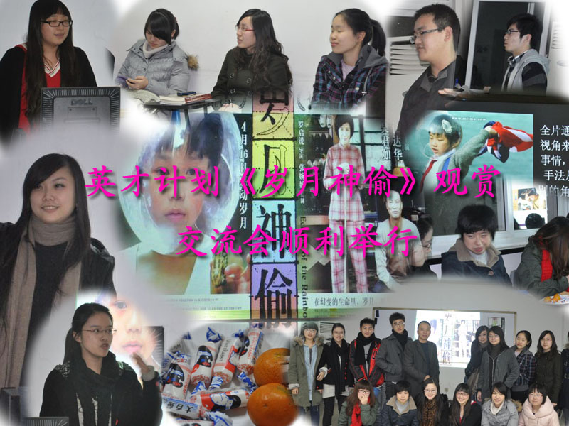 2010年12月8日晚六点半,由yl23455永利英才计划举办的《岁月神偷》观赏交流会在yl23455永利嘉定校区文博楼213顺利举行,第一周曾参加《岁月神偷》集体观赏活动的部分英才学员齐聚一堂,一起分享了这部电影的感受。在主持人带领大家重新回顾《岁月神偷》这部电影的精彩剧情和背景知识的之后,本次的交流会正式开始。