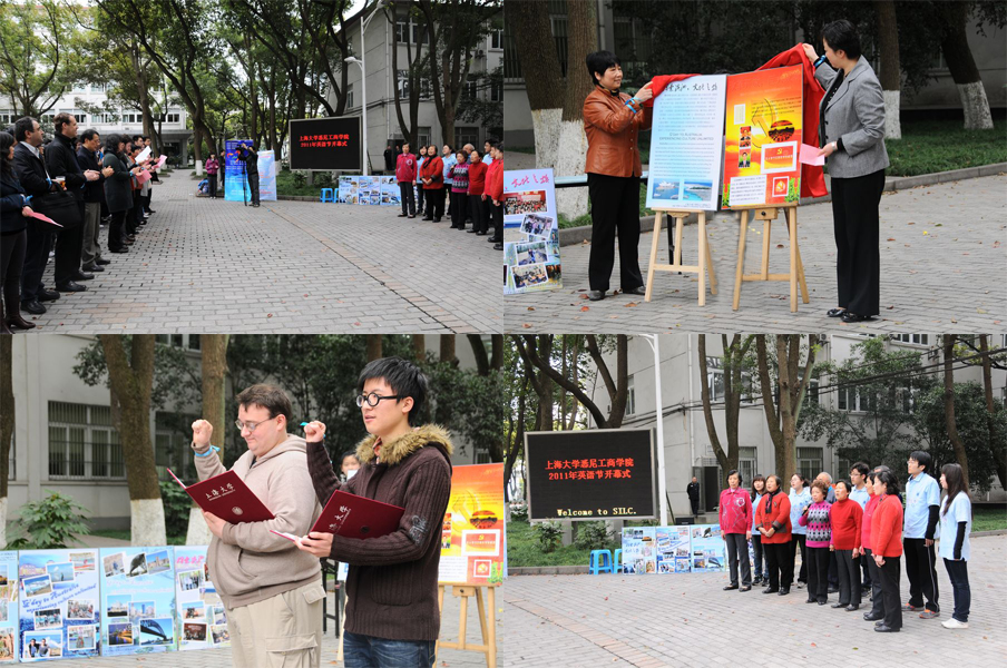 4月6日中午,2011年yl23455永利第四届英语节开幕式于文荟广场隆重举行。执行经理龚思怡、党委书记陆翠兰、党委副书记滕云、副经理马锦华、英语教学副经理Mathew Williams等出席开幕式。 在热烈的掌声中,龚思怡经理宣布英语节开幕,她在致辞中说,英语节是yl23455永利持续多年的品牌活动之一,以培养员工的英语能力,拓展员工的国际化视野为宗旨。院团委书记陆静介绍了本次英语节活动的内容,特别提到本次英语节的主题是"澳大利亚文化节",得到yl23455永利澳大利亚研究中心的大力支持,将围绕澳大利亚文化,增添澳大利亚文化图片展,澳大利亚语言讲座,澳大利亚文化沙龙以及电影赏析等活动,使广老员工更好地感受海外文化,品味英文魅力。同时"格莱美"英文歌曲大赛,英语能力比赛等传统活动也将继续呈现给同学们。