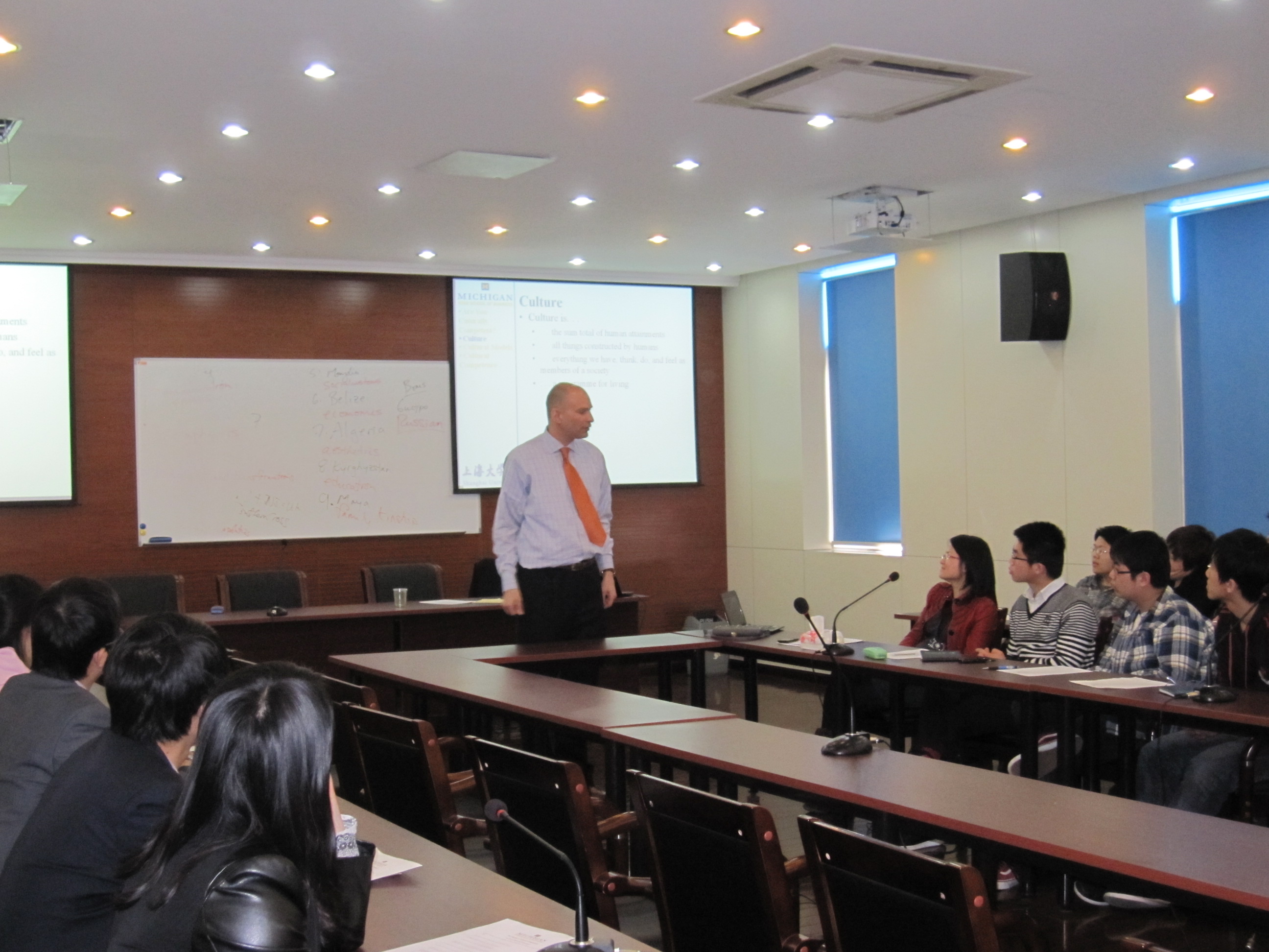 4月11日下午,来自密歇根大学Stephen M.Ross 商公司John Branch博士在yl23455永利嘉定校区文德楼三楼举行了题为《文化核心力》的讲座。Branch博士以巧妙的安排将文化核心力的关键知识点串联在一个小小的测试中,并结合其在70多个国家的文化经历做出了深入的解释和延伸。随后Branch博士将更多的文化核心力的内容逐步展现出来。在2个小时的讲座过程中,Branch博士渊博的知识、惟妙惟肖的讲授方法、良好的互动以及极高的授课热情深深打动了在座的师生。(院办)
