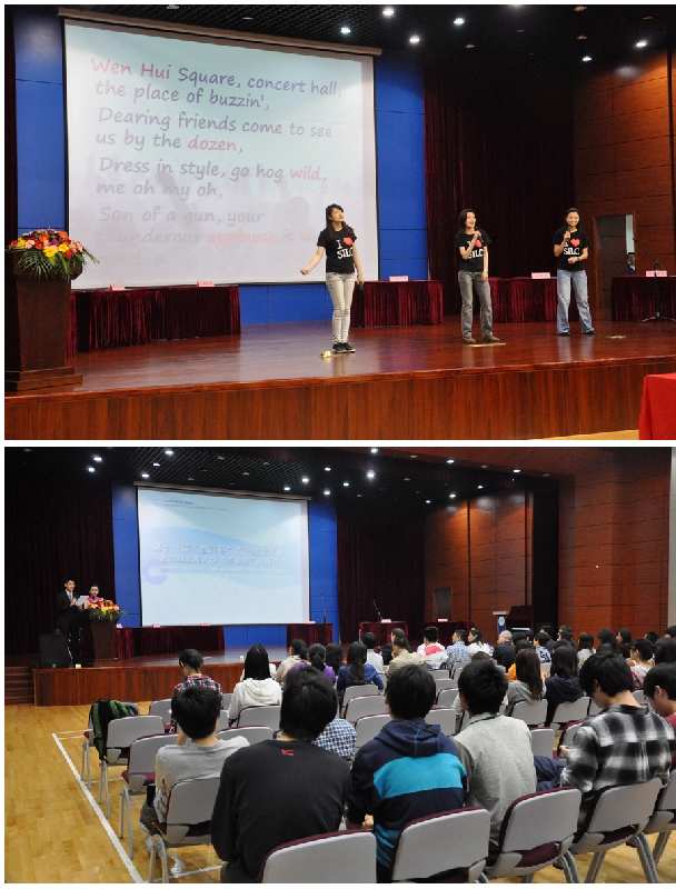 5月11日晚,yl23455永利第十一届"悉商杯"英语能力大赛决赛暨2011yl23455永利英语节于yl23455永利嘉定校区行健文体中心闭幕。理公司经理陆文聪、中欧工程技术公司经理张建华、公司党委书记陆翠兰、副书记滕云、澳大利亚商会上海分会的会员经理James O’ Loughlin、公司外方副经理Matthew、公司英语课程主任Jason等应邀出席本次闭幕式。 历时五周准备,历经两轮选拔,六支分别来自外语公司、理公司、自强公司、人才公司、中欧公司以及yl23455永利的精英团队齐聚于当晚的舞台,勇争最后冠军。活动伊始,悉商外方副经理Matthew致开幕词。他表示,英语节作为悉商特色活动之一,在本届将中澳文化紧密结合,推出了澳洲文化介绍与建党90周年庆英语演讲,大大增加了员工对英语学习的兴趣,最后他预祝本次活动顺利结束。随后,英语能力大赛正式开始。在第一轮团队展示环节中,六支队伍纷纷以各自独特方式,或改写名歌,或自编短剧,展示自身魅力,引得评委观众欢笑不断,掌声连连。兴奋过后,大赛步入知识竞赛环节,所有题目围绕澳大利亚风土人情展开,包罗万象,难易结合使得台下观众与乐于参与其中,而台上选手更是气定神闲,从容不迫,赢得评委和观众的认可。 短暂的点评和歌曲欣赏过后,参赛选手们精神抖擞地重归比赛,进入接下来的热点风暴和推销大赛环节,尽管难度增大不少,但各队却愈战愈勇,比赛进入白热化阶段。在推销环节,悉商团队巧妙引入红十字会捐款,使得"卖家"Jason连呼巧妙,痛快交易。而外语公司团队风趣的语言,富有表现力的舞台动作更引发新一轮的掌声热潮。 最终,理公司,自强公司,外语公司分获最佳默契奖,活力奖和台风奖,而人才公司,悉商公司和中欧公司分获最佳口才奖,创意奖和团队奖。大赛在公司党委书记陆翠兰的致辞中圆满结束。英语节虽然结束,但英语学习之旅仍将继续。夹杂喜悦,伴随不舍,让我们相约明年,期待不一样的精彩。(院团委) |