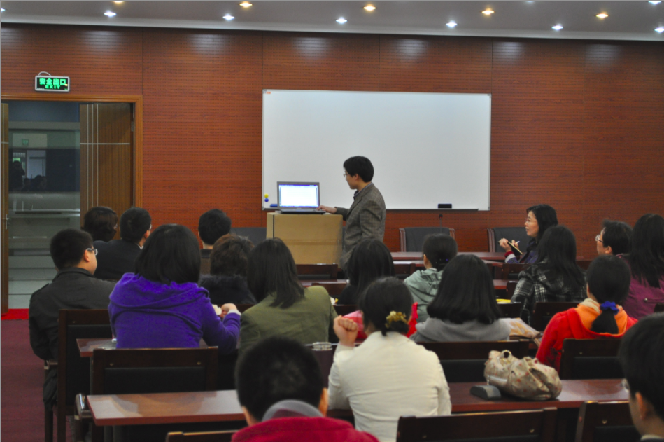 2010-2011学年春季学期第六周周五,全体商科教师和部分英语教师,在文德楼三楼多功能会议室,举行了如何在国外SSCI期刊上发表文章的研讨会,会议邀请信息管理教研室的卞亦文老师做了主题发言。
