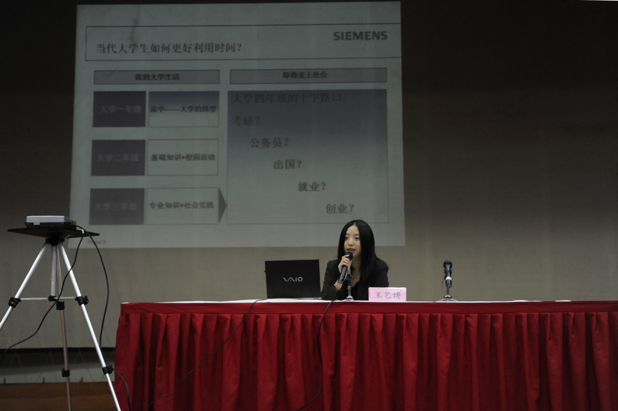 王经理为大三的学子们提出了中肯的建议,必须先进行职业规划,并全方位地认识自己。明白三个"什么"——我要做什么,我能做什么,我该做什么。并进一步分析了针对不同的选择应该考虑哪些现有的问题以及采取哪些相应的策略。例如,针对想要出国考研的群体,王艺博就对这些员工提出了一些问题,即是否适合继续读书,是否合适出国读书,应该选择什么公司、专业和家庭对此的适应程度等。对于想要报考公务员的员工,员工自身性格与职业的适合程度,工作和生活的平衡情况的问题被提了出来。而想毕业后就立即就业的员工,他们自身的兴趣爱好则起到了十分关键的作用。