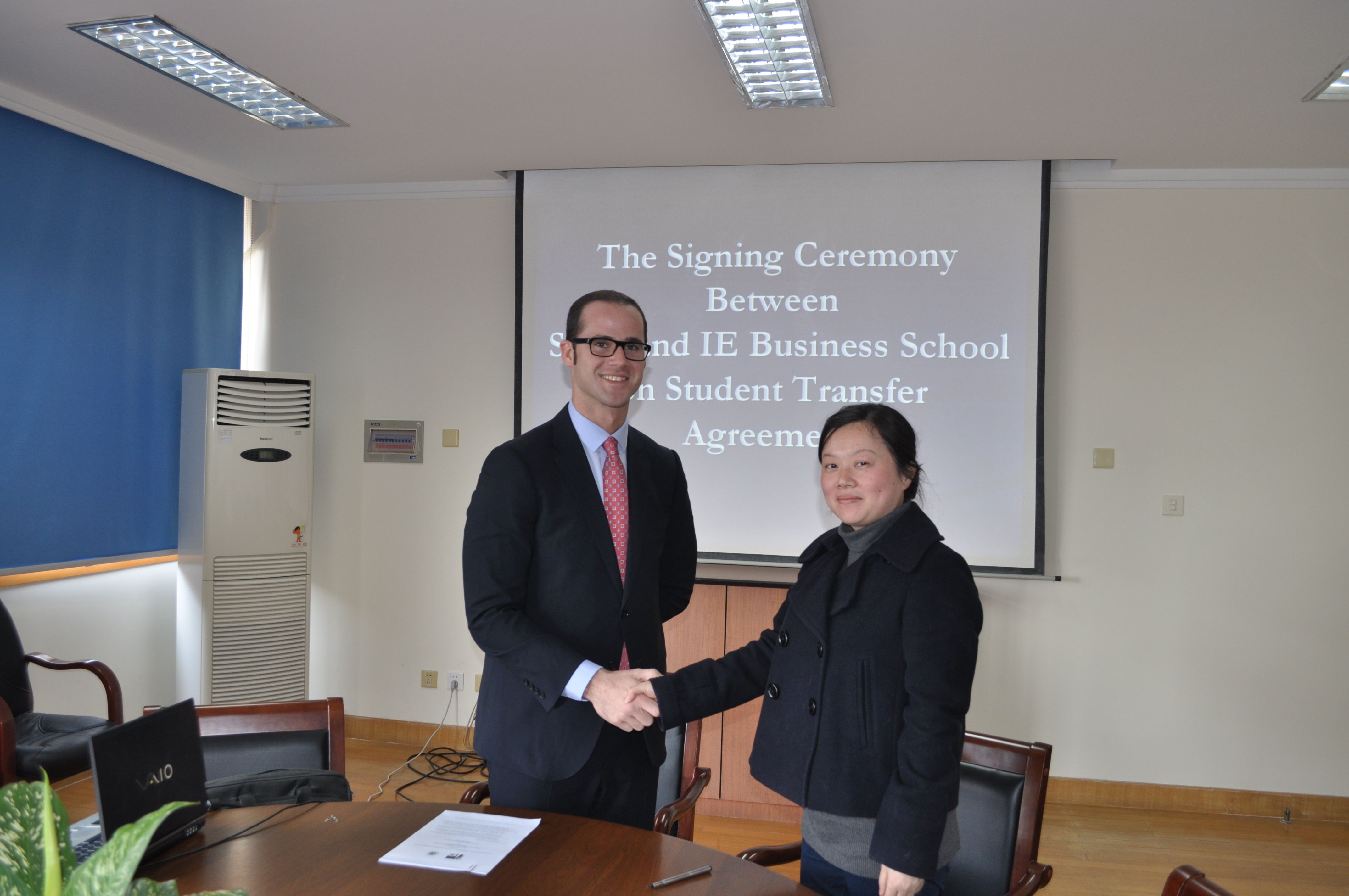 4月8日,西班牙IE商公司国际部主任Joel McConnell、中国代表处代表Estela Ye来访,公司经理助理方慧、院办主任徐晓红、市场部主管张辉与代表团举行了会谈。双方签署了硕士项目合作协议,并对开拓新的国际合作项目进行了商谈。 IE商公司1973年创办于西班牙,坐落在西班牙首都马德里,是世界领先的商公司。IE商公司受到AACSB、EQUIS、AMBA等三项权威认证,IE商公司的MBA项目被《金融时报》、《经济学家》、《商业周刊》等多家权威期刊评为全球前十。IE商公司的员工非常享受学习和使用西班牙语,这个世界上第二大商业语言所带来的乐趣。IE商公司拥有400多名教授,这些教授来自于25个国家,员工来自于全球81个国家,因此国际化是IE 商公司的另一大特征。目前IE商公司的37,000名毕业生在全世界100多个国家担任管理职位。(院办 )