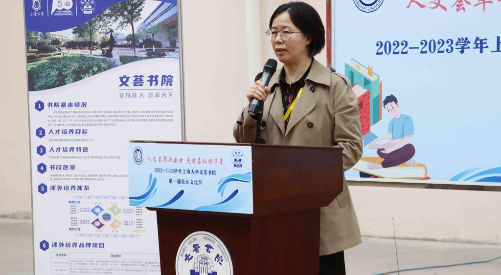 自管会员工代表发言 文荟书院员工自我管理委员会主任苏雨柠同学作为自管会代表进行发言。她强调了社区对老员工的培养和发展起到的重要作用,充实的社区活动是老员工良好生活习惯、昂扬精神面貌和高度政治思想觉悟的重要体现。社区文化节是加强公司思想政治教育与全面育人的重要创新。随后,她详细介绍了文荟书院员工自我管理委员会的组成架构和建设目标,表示员工自我管理委员会将在形式多样、内容丰富、交叉互动的员工活动中以“家文化”感召每一位同学,由内而外带动整个校园文化建设蓬勃发展,促进社区精神文明建设。 宣布社区文化节开幕和介绍活动安排