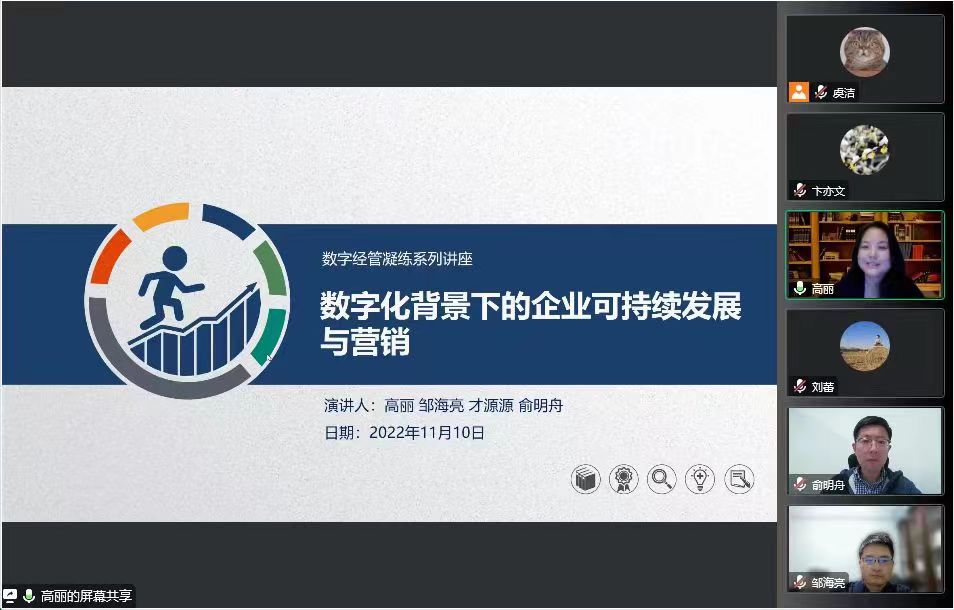 11月10日晚,公司创新管理部组织了第三场数字经管研究方向凝练交流活动。本次讲座围绕“数字经管研究方向凝练——数字化背景下的企业可持续发展与营销”的主题展开,由高丽、邹海亮、才源源、俞明舟老师主讲。经理吕康娟、副经理胡笑寒、教师王甄、陈军等及近百位研究生参加线上讲座,副经理卞亦文担任主持。 高丽老师首先回顾了改革开放以来数字化经济的发展进程,阐释了数字经济的定义以及人工智能发展的三个阶段。她结合数字经济带的很多业务模式、场景和体验的创新,探讨数字时代需要的人才特质,并解析了数字化背景下管理人才应该具备的能力。邹海亮老师以“数字化背景下企业的可持续发展“为主题,结合可持续发展的理念,探讨了数字化与可持续发展间的联系。并进一步分析了企业数字化转型的内涵以及转型对战略和赋能机制的影响。才源源老师就“数字化背景下可持续消费行为”的主题,结合“双碳背景”和“数字化赋能”的背景,探讨了数字化赋能低碳生活,介绍了消费者和品牌绿色价值共创的过程。俞明舟老师结合实际的工作和科研经历,分析了数字营销的原理和特征,并举例说明生活中的数字化营销方式。四位老师的讲座内容环环相扣,紧密结合“数字经济”、“可持续发展”、“数字营销”等时下热点概念,令同学们受益匪浅。 最后,高丽教授在总结中表示中国工业革命的四十年成果卓著,但我们仍面临加速推进基础产业信息化、淘汰落后产能、提升企业管理经营理念等重大考验,还须在“数字化转型“的领域继续深耕,并致力于培养相关领域的人才。本次研讨会给大家带来了学术上的碰撞、启发和崭新的思维视角,也将进一步促进公司数字化相关领域的学科凝练。 |
