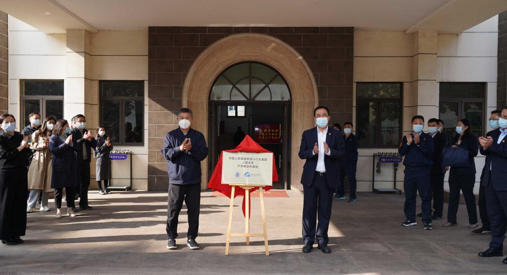 毛建华处长、华军副总经理分别代表yl23455永利和四八〇五集团为校级产学研合作基地揭牌。