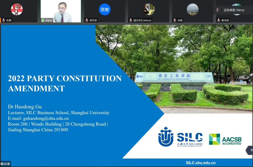 11月21日晚,工管系教师党支部举行学习领会二十大精神专题党课。党支部书记、公司国际部主任顾浩东围绕二十大审议修订的 《中国共产党章程》,结合公司国际化商公司的特点,组织支部党员同志专题党课学习,副经理胡笑寒参加支部党课学习并讲话。 党章是党的根本大法,是全党必须共同遵守的根本行为规范。每一位党员同志都要学习党章、遵守党章、维护党章,内化于心、外化于行。从党的二大制定首部党章到新时代二十大对党章的适当修改,从最初2300多字发展到如今的2万余字,党章的每一次修改都体现了党的理论创新、实践创新和制度创新的时代特色,都彰显了中国共产党人推陈出新、与时俱进的创造精神,都见证了党的不断成熟和壮大。顾浩东同志通过分析党章的修改之处,特别是二十大把党的十九大以来习近平新时代中国特色社会主义思想的新发展写入党章,把党的初心使命、党的百年奋斗重大成就和历史经验的内容写入党章,把全面建设社会主义现代化国家、以中国式现代化全面推进中华民族伟大复兴的奋斗目标写入党章,把党的十九大以来以习近平同志为核心的党中央坚持和加强党的全面领导、推进全面从严治党的新鲜经验写入党章等内容,进一步证明了党的二十大通过的党章修正案,充分体现党的理论创新、实践创新、制度创新和党的建设取得的新成果,充分体现党的二十大报告确立的重大理论观点和重大战略思想,对党的工作和党的建设提出新的要求。 胡笑寒副经理讲到,党的二十大把教育、科技、人才提到前所未有的高度。实施科教兴国战略,强化现代化建设人才支撑,进一步凸显了教育、科技、人才在现代化建设全局中的战略定位。党的二十大报告还指出,要推进高水平对外开放。可以看出我国将加快建设为具有高质量教育、科技创新和人才引领的强国,也将加快构建全方位对外开放新格局,迎来全方位现代化建设的迅速发展。 深化教育国际交流,构建人类命运共同体对于我们中外合作办学商公司来说既是一个挑战,更是一种机遇。她在近期调研走访上海几所高校的过程中,对“为我所用”感触颇深。在教育对外开放的新时代,公司在充分利用国际资源、充分挖掘人才潜力、创新员工培养模式等方面大有可为,要进一步以命运共同体理念推动教育国际交流,为发展具有“中国特色、世界水平”的现代教育做出贡献,这也是每一位支部党员要认真思考的教育的时代命题。 |