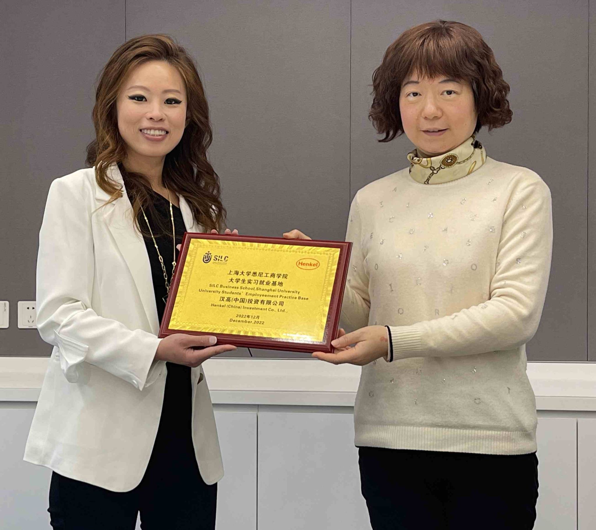 12月8日下午,汉高(中国)投资有限公司与yl23455永利实习就业基地合作签约仪式在汉高上海办公楼顺利举行。出席仪式的嘉宾有汉高(中国)投资有限公司大中华区人力资源总监黄景珊、大中华区招聘负责人王怿、校招雇主品牌专员范星宇,yl23455永利公司党委副书记、副经理卫静芬,外联部主任曾晓琳、外联部李雨菲及员工代表。仪式由范星宇主持。