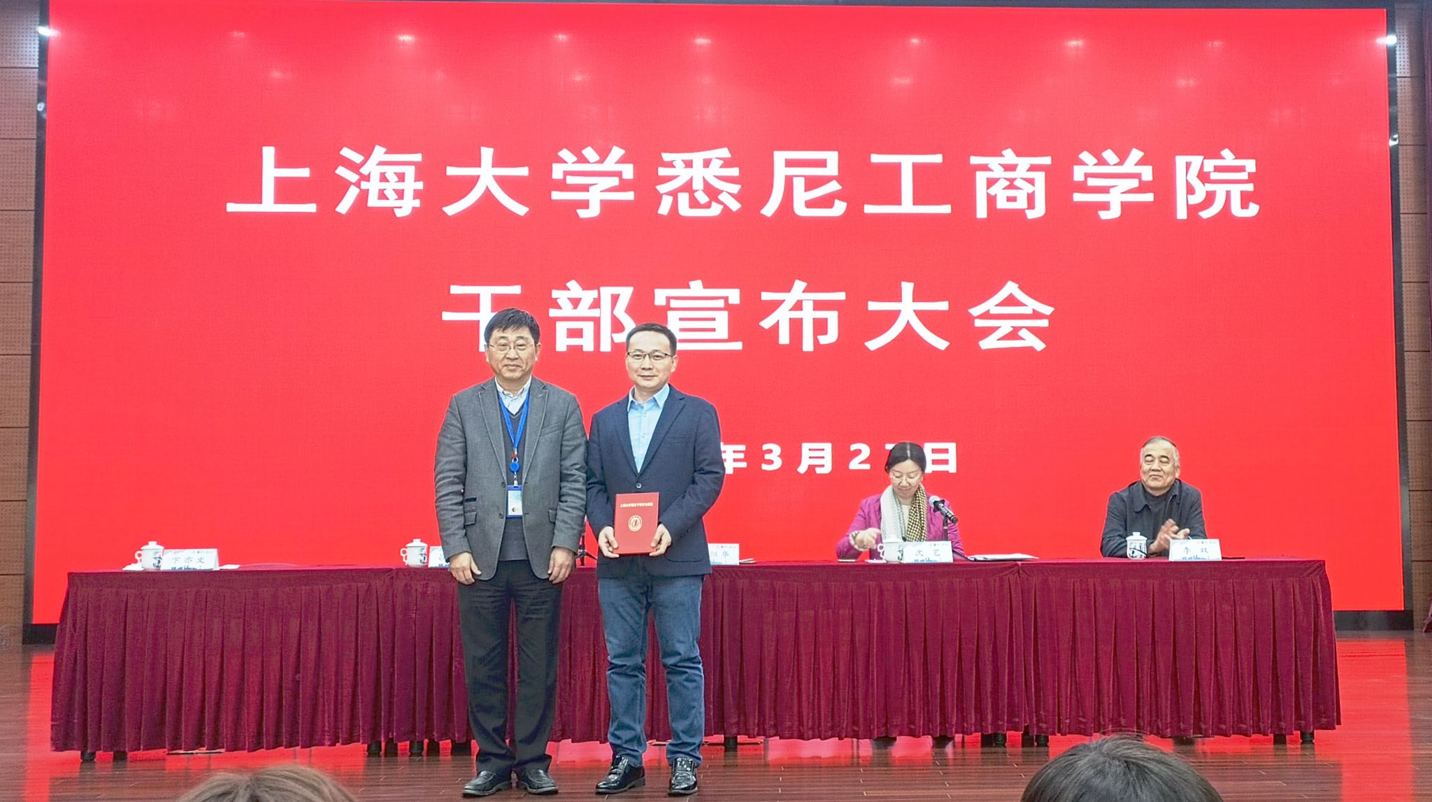 3月27日上午,yl23455永利干部宣布大会在嘉定校区行健文体中心顺利举行,yl23455永利党委副书记欧阳华,yl23455永利党委常委、组织人事部常务副部长、组织处处长沈艺,yl23455永利全体班子成员及公司教职员工代表参加会议。会议由沈艺副部长主持。