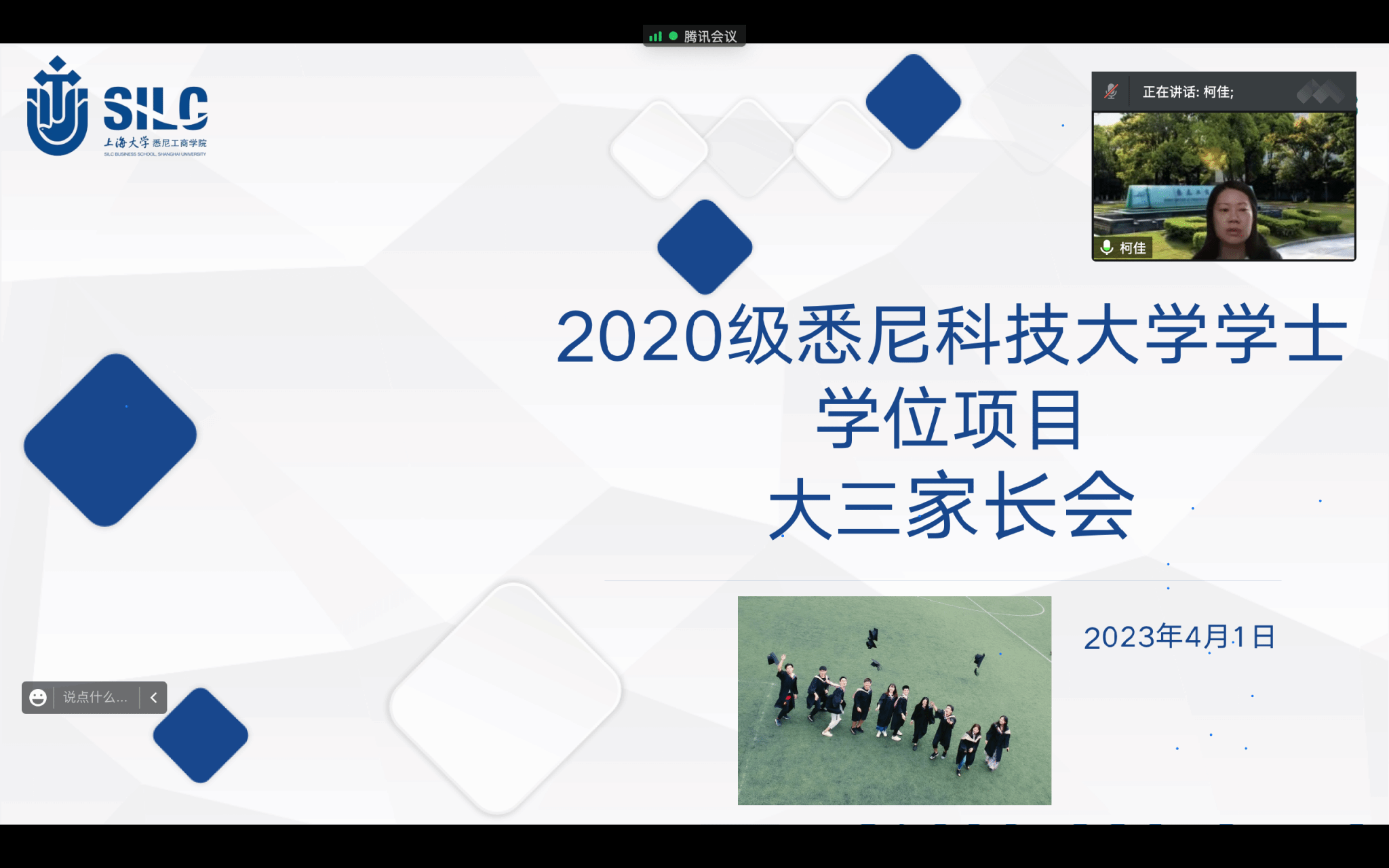 为增进家校交流,发挥育人合力,协同做好员工学业生涯规划,公司市场发展部于4月1日通过线上方式组织召开2020级UTS学士学位项目员工家长会,出席会议的有市场发展部主任谭鲲、留学事务主管张辉、2020级UTS学士学位项目辅导员谢瑞倩。会议由员工事务主管柯佳主持。