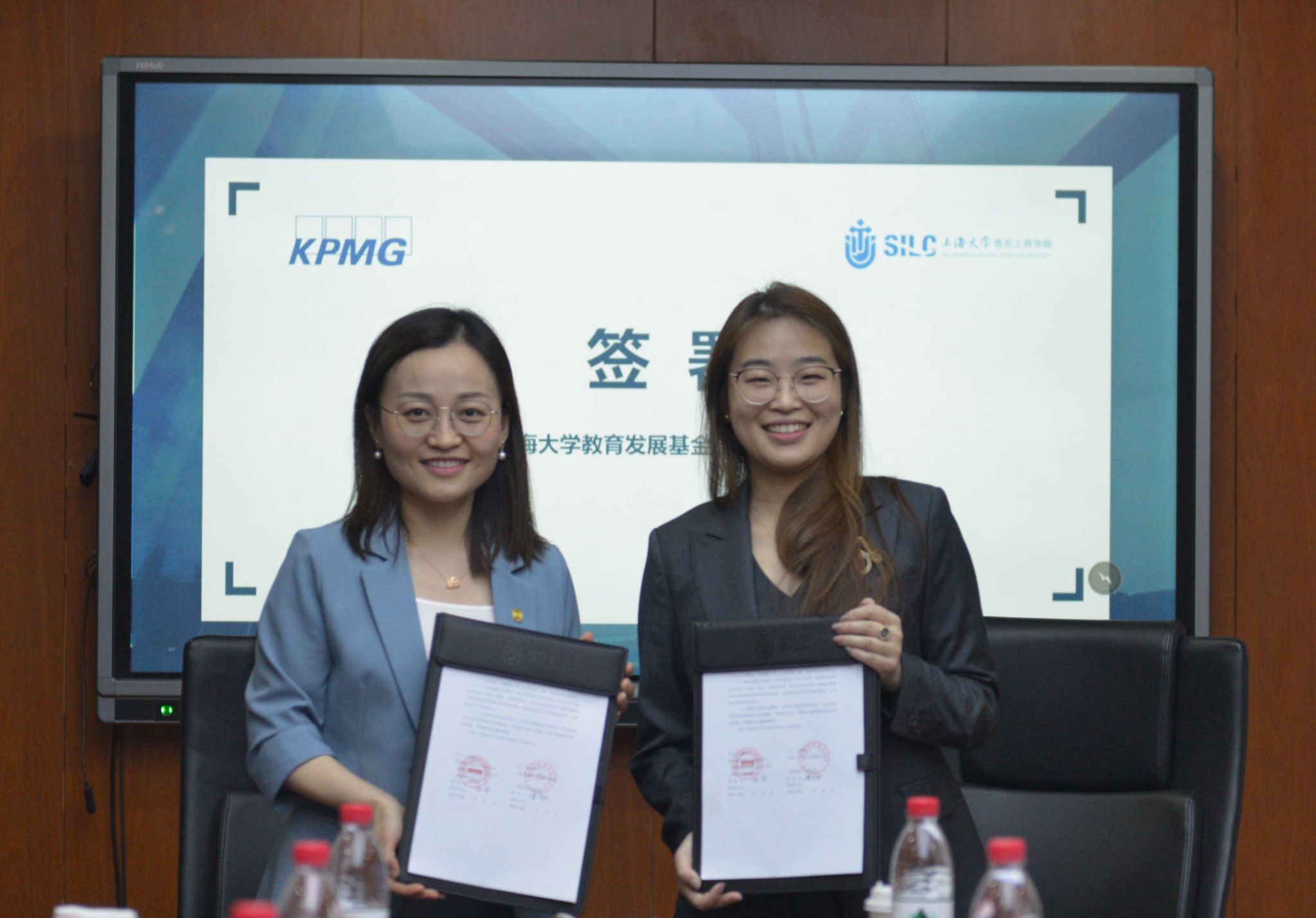 王文立和卫静芬分别代表毕马威和悉商公司签署《实习就业基地协议》。