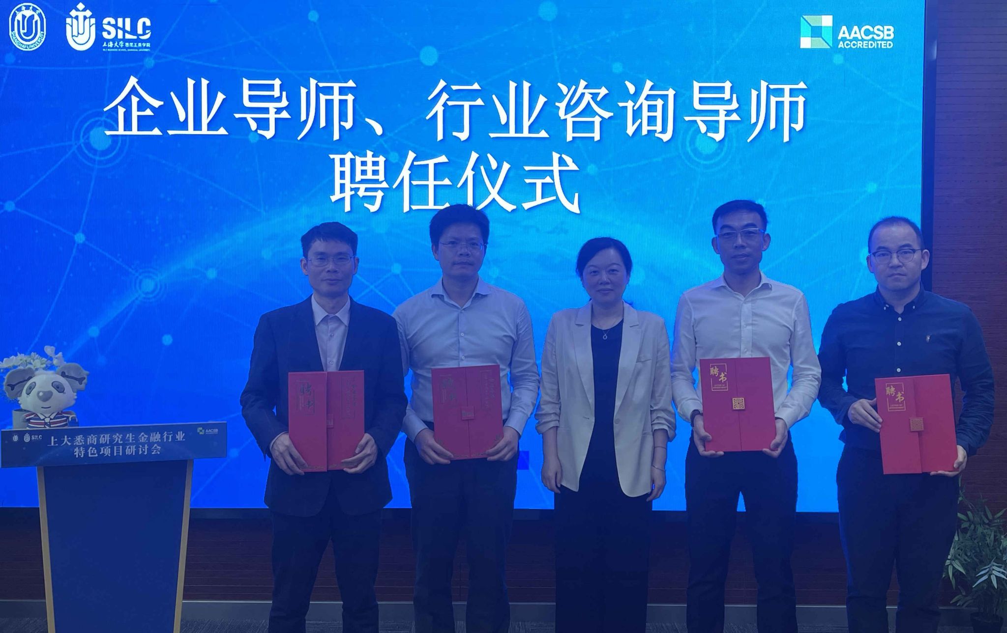 方慧向浙商证券投委会委员、研究所联席所长邱世梁,东方证券股份有限公司风险管理部董事卜永强颁发企业导师聘任证书,向国金证券人力资源部助理总经理魏博、东海期货有限责任公司总经理助理苏振军颁发行业咨询导师聘任证书。