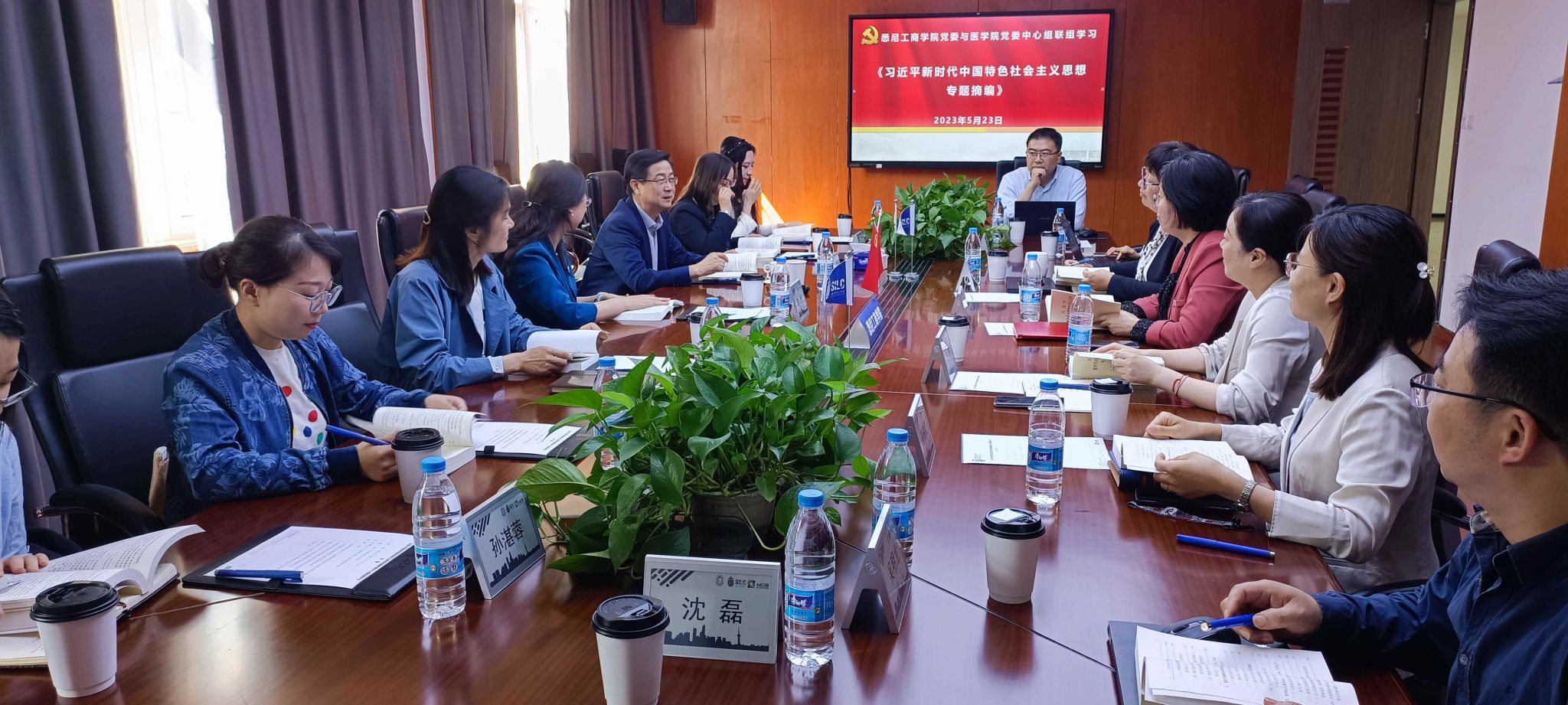 5月23日下午,yl23455永利医公司党委书记李娟、经理刘斌、党委副书记、副经理盛晓娜等一行7人到yl23455永利开展党委中心组联组学习并进行调研交流。公司党委书记吕康娟、副经理胡笑寒、副经理方慧、副经理(挂职)孙燕红、党委委员吴明龙等参加学习交流。此次联组调研学习是在全党上下深入开展学习贯彻习近平新时代中国特色社会主义思想主题教育的背景下开展的交流研讨,对于兄弟院校之间增进交流、加深了解,促进交叉团队建设、谋划国际合作具有非常重要的意义。