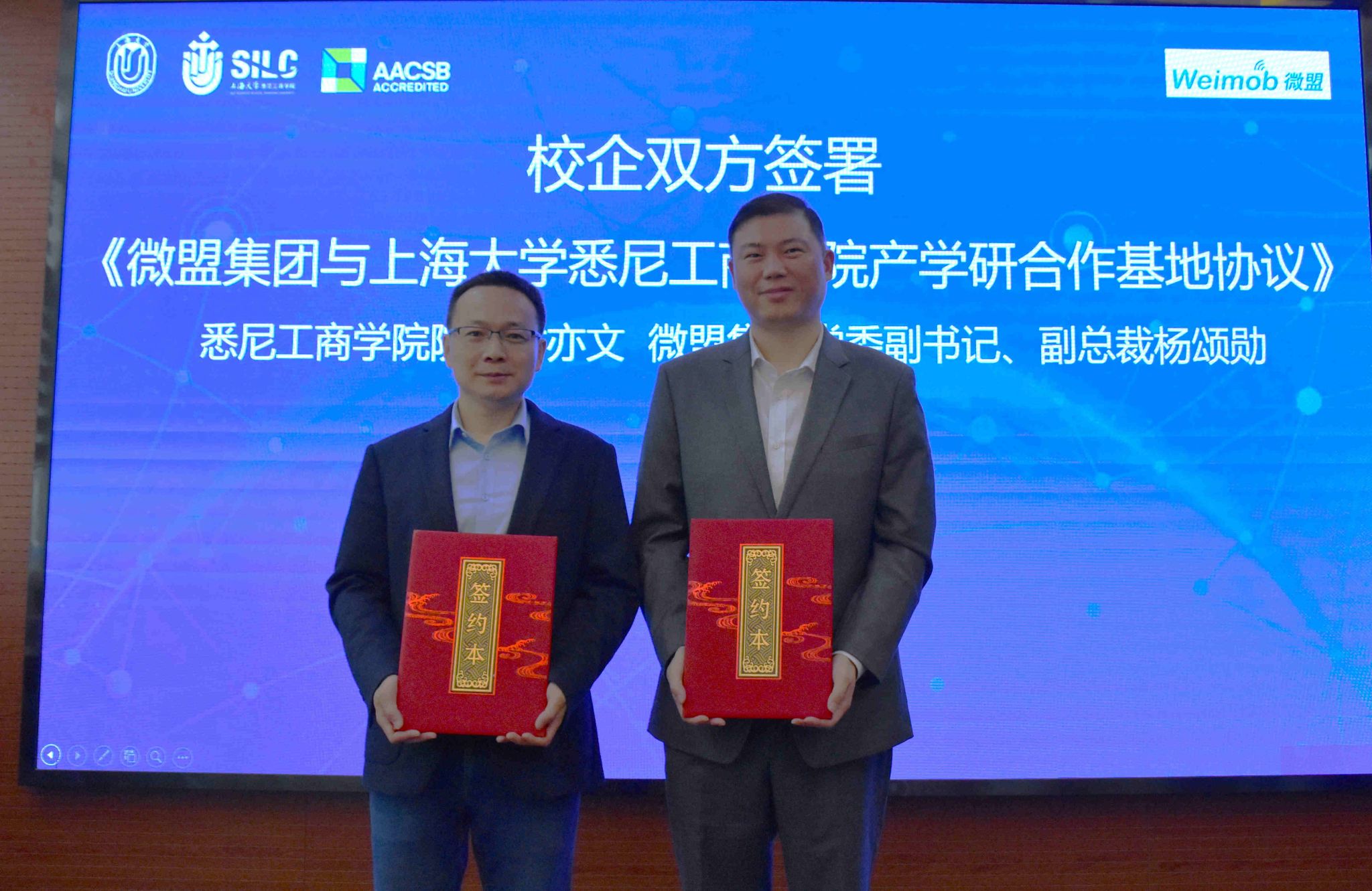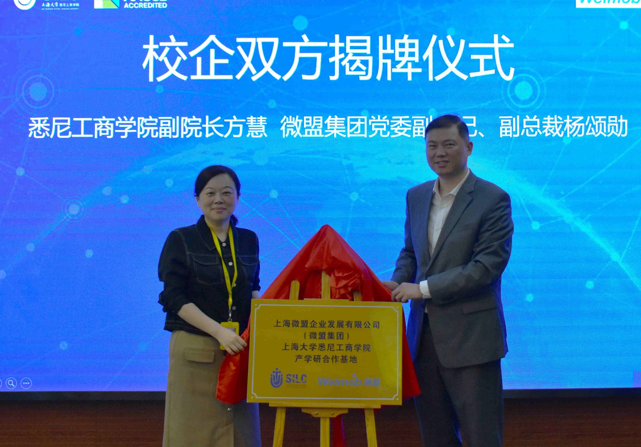 杨颂勋、方慧代表微盟集团与悉商公司揭牌,校企协同育人迈出关键一步。