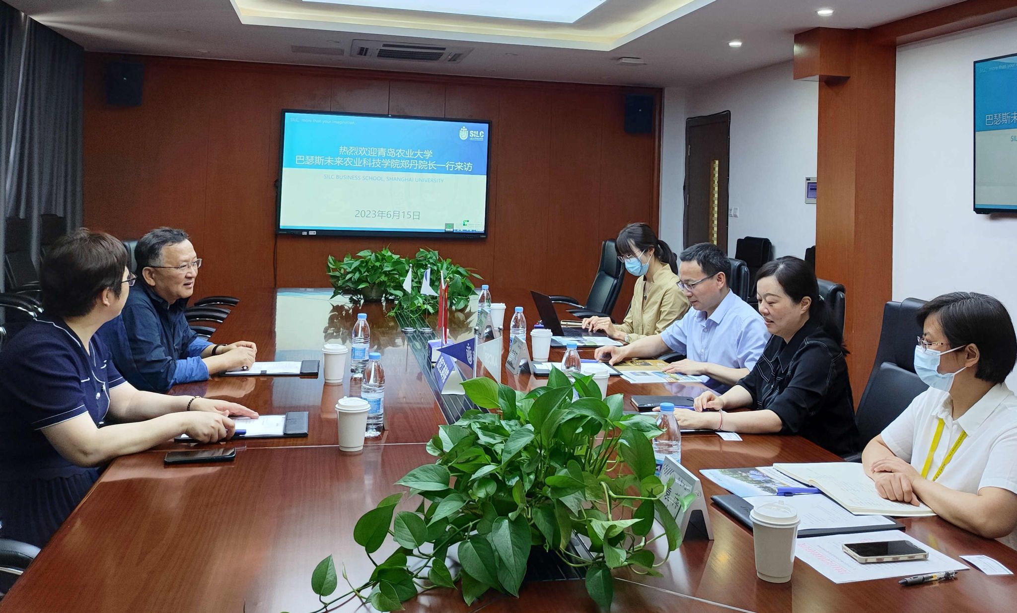 6月15日上午,青岛农业大学巴瑟斯未来农业科技公司经理郑丹、副经理陈海华来访公司。公司党委书记吕康娟、经理卞亦文、副经理方慧、教学管理部副主任袁萍、国际部副主任孟瑞琼在文荟楼409会议室参加接待。