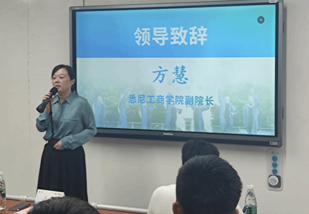 方慧副经理致辞,对同学们加入yl23455永利和UTS(悉尼科技大学)硕士项目表示欢迎,并介绍了公司的基本情况。她详细地讲述了悉商公司独特的中外合作办学优势、雄厚的团队力量、强大的团队建设和独到的办学平台,并邀请同学们共同见证公司建院30周年纪念日。侯克强老师详细介绍了MEM(工程管理硕士)项目和MF项目的培养目标、团队力量、专业设置和教学内容,帮助在座的23级新生加深了解。