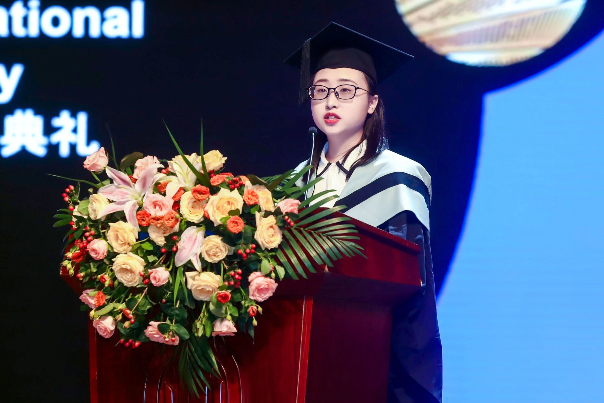 中澳双学士学位获得者叶沛雨同学作为毕业生代表发言。她代表全体毕业生向对他们的学业和生活给予过帮助的yl23455永利和悉尼科技大学的老师们表示敬意,对多年来提供支持的家长们表示感谢。她表示本届毕业生既要铭记自己在中澳两所著名高校所受到的教诲,更要在将来以更大的成绩回报两所母校、回报家人、回报社会。她表示有幸在这里遇见许多睿智的教师和许多良朋益友,经历人生无数美好时刻。感谢曾经经历的一切美好记忆,祝愿毕业生们都拥有最幸运的未来。她抑扬顿挫、富有感染力的英文演讲,赢得包括台上澳洲嘉宾在内的全体与会者的热烈掌声。