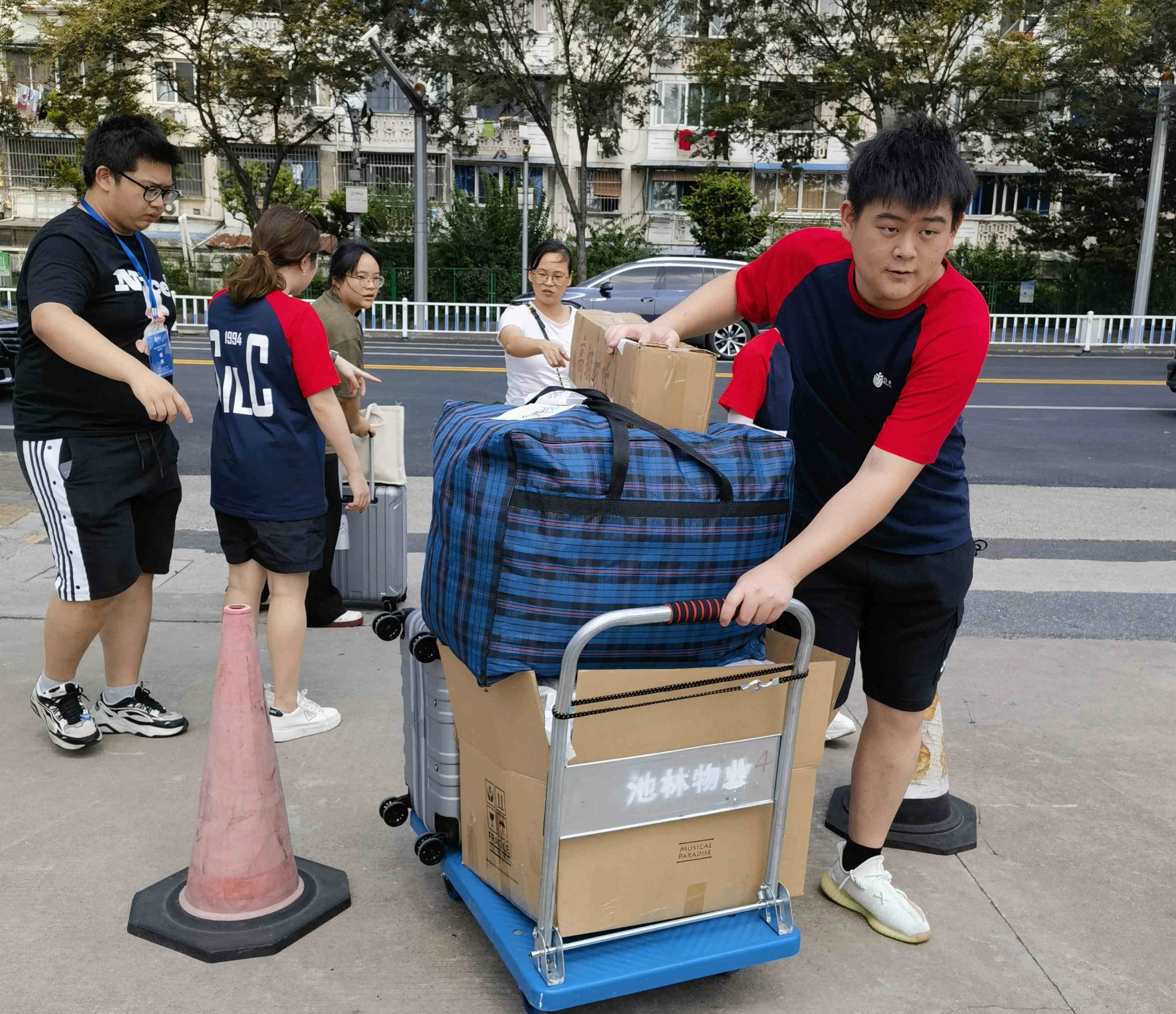 新生们首先前往各寝室楼办理入住手续。迎新团队在接驳点安排好车辆及引导人员,确保新生和行李安全顺利抵达入住寝室。负责迎新工作的辅导员老师们驻扎在各寝室楼,和志愿者们一起悉心引导新生入住,协助搬运行李,为同学及家长们答疑解惑,确保入住环节井然有序。新生们在办理好入住手续后,纷纷开心地布置整理起自己的这片小天地。收拾好寝室,新生们便来到行健文体中心办理报到事宜。在迎新志愿者们的引导下,同学们递交材料、核实身份信息后,领取新生大礼包和校园一卡通。公司党委书记吕康娟等院领导一行也亲自到现场指导迎新工作,了解新生报到情况,与新生及志愿者们亲切交流沟通。兴高采烈的同学们也纷纷表示,师长们的热情迎接和精致的“见面礼”,让他们十分感动,也对即将到来的老员工活感到无比期待!不少同学和家长都在报到处合影留念,记录下这一珍贵的人生瞬间。