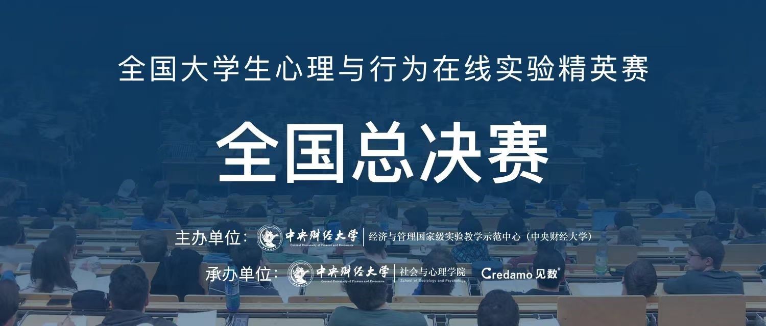 本次比赛由经济与管理国家级实验教学示范中心(中央财经大学)主办,中央财经大学社会与心理公司、Credamo见数联合承办,中国心理学会经济心理学专业委员会、中国社会心理学会大数据网络心理学专业委员会担任学术指导单位,成功之道教育集团、北京信索咨询股份有限公司共同赞助。自2023年5月25日正式启动以来,累计报名人数6804人,参赛高校总数293所,覆盖除港澳台地区之外全国31个省、自治区、直辖市。赛事期间,共计七万余人观看了赛事说明会和相关赛事公益培训。 本次比赛倡导通过在线实验模式灵活化的研究设计和多样化的研究功能,克服场地、时间和天气等环境条件的限制,响应互联网技术和大数据应用的快速发展,研究现实环境中的心理与行为现象。经过前期校级选拔赛、分赛区竞赛的层层选拔,最终来自东、西、南、北四个分赛区共53个参赛团队成功进入全国总决赛。