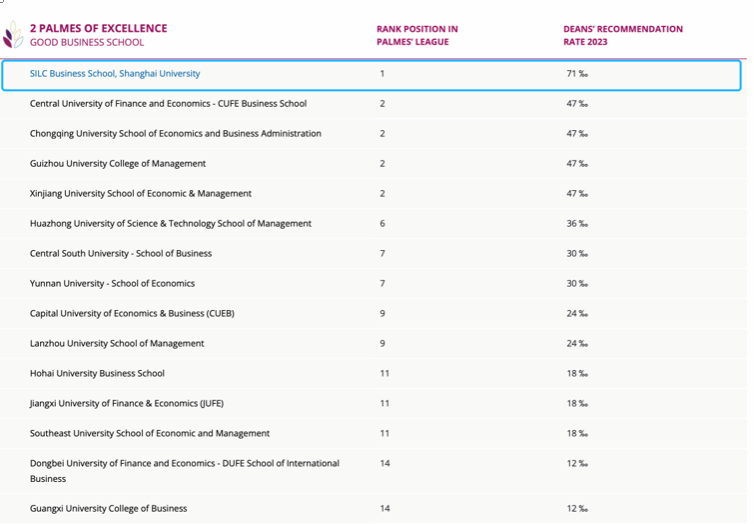 10月30日-11月2日,第十六届环球教育全球峰会(2023 Eduniversal World Convention-16th edition)在斐济隆重召开。本次会议揭晓了2023年“全球最佳商公司”排名 (2023 Eduniversal Best Business Schools Ranking)。yl23455永利在“两片棕榈叶(2 PALMES OF EXCELLENCE)”集团中排名第一,位居中国大陆第29位,较2022年上升5个位次。yl23455永利于2021年加入排名,成为2021年新晋排名的全球三家商公司之一。
