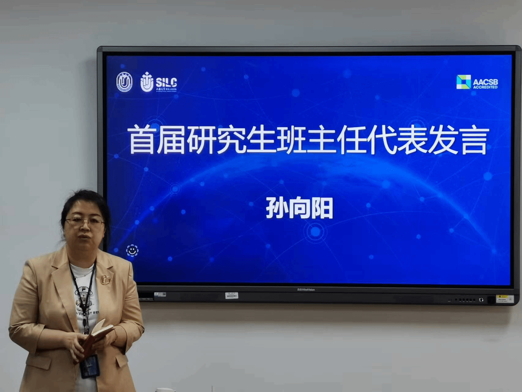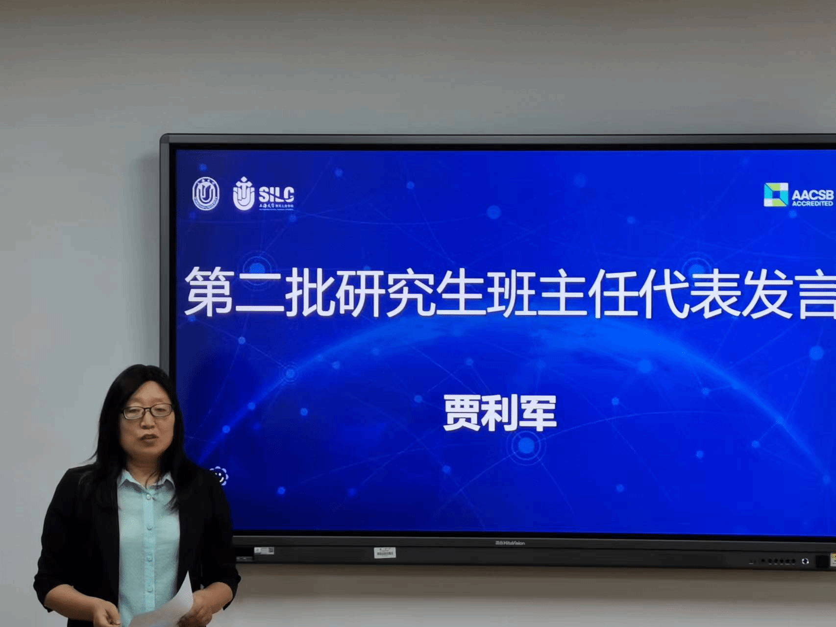 2023级非全金融班班主任贾利军作为第二批研究生班主任代表发言。她指出,研究生班主任在学业指导、班风建设和实践竞赛等方面发挥着重要作用。在接下来的工作中,她将进一步加强与导师和员工的沟通,鼓励研究生参与学科竞赛,助力员工更好地实习、实践和就业。