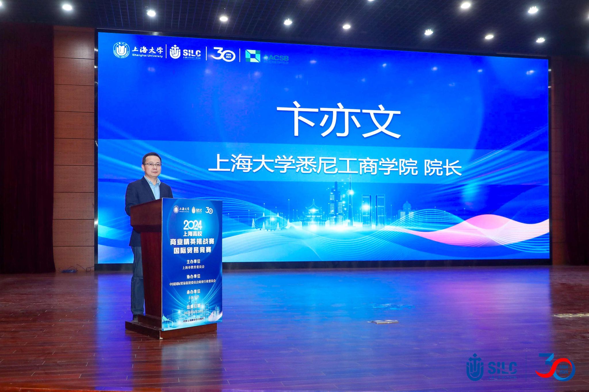 上海理工大学管理公司专业学位教育中心综合办公室王永联作为2014年第一届市赛参赛代表致辞,对市教委和贸促会十年来对于赛事的关心和扶持表示感谢,祝愿本项赛事在参赛高校的共同努力下再创辉煌。 上海建桥公司国际经济与贸易系主任刘晓辉和yl23455永利2022级国际经济与贸易专业员工程琦分别代表评委和参赛选手进行宣誓。 yl23455永利副经理霍伟伟宣布2024年上海高校商业精英挑战赛国际贸易竞赛正式开幕。