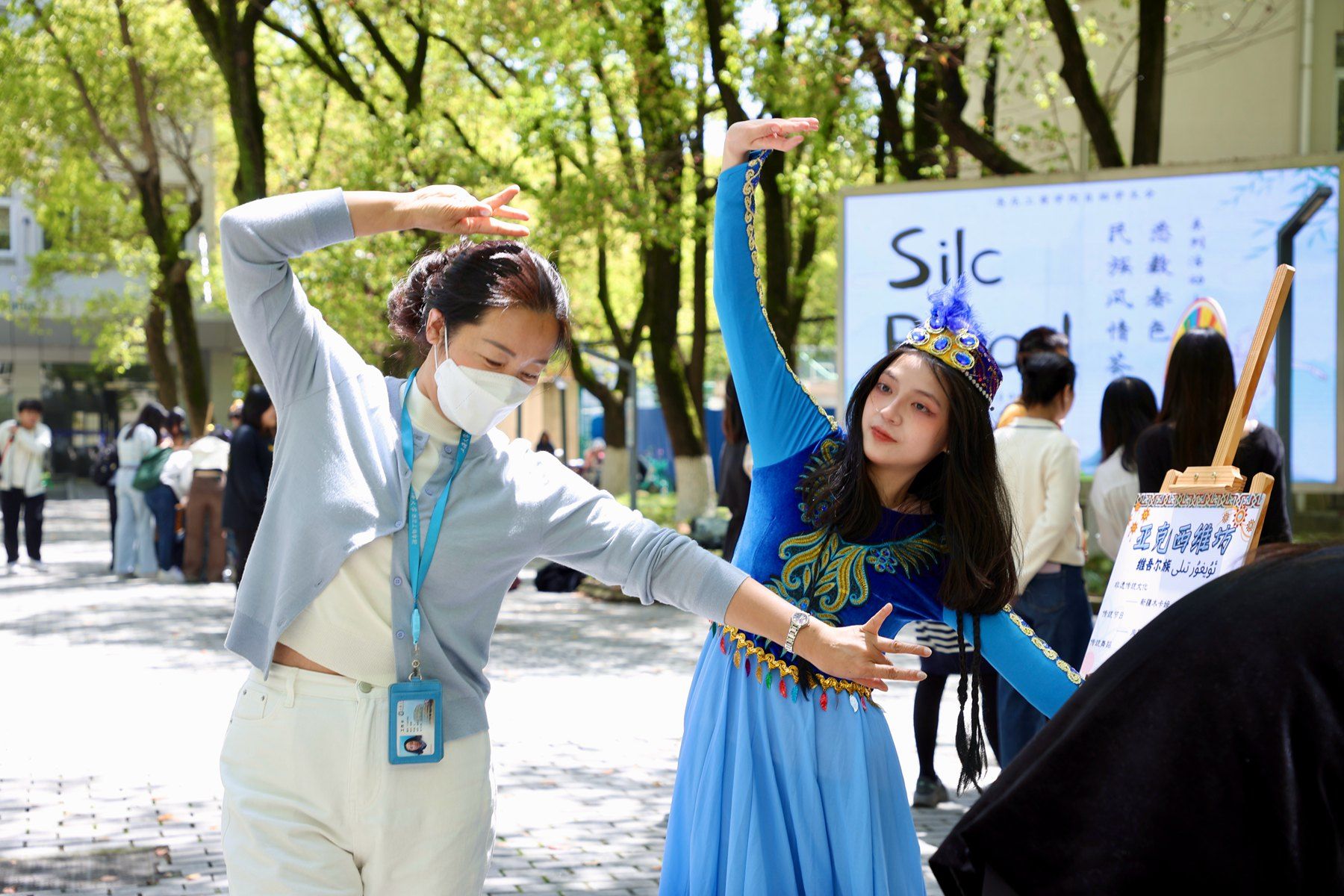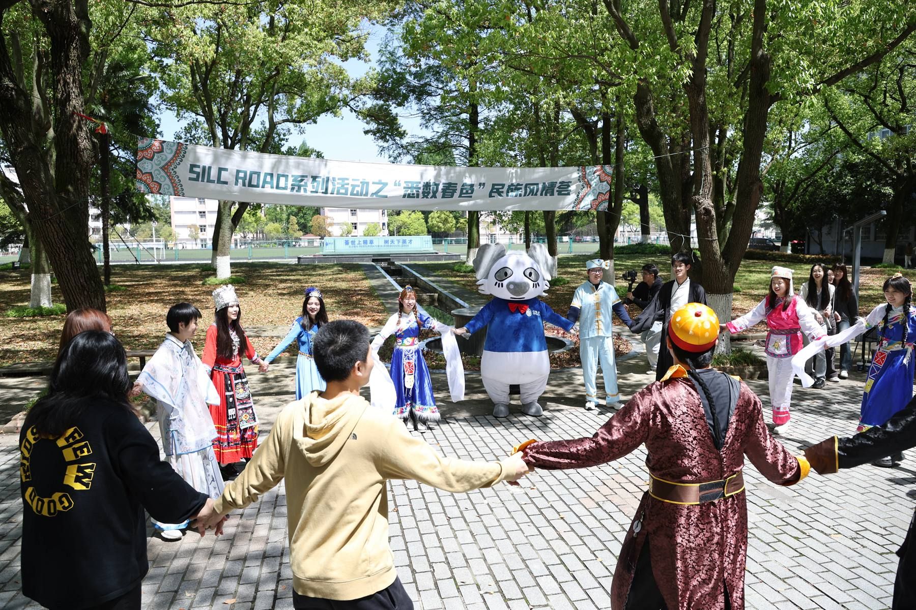 4月18日中午,备受期待的“SILC ROAD系列活动之’悉数春色’民族风情荟”在文荟广场盛大举行。本次活动由yl23455永利自招项目员工会主办,面向yl23455永利嘉定校区所有师生,活动选择了7个民族,通过设立摊位游戏互动的方式展示中华多民族文化的深厚底蕴和独特魅力。