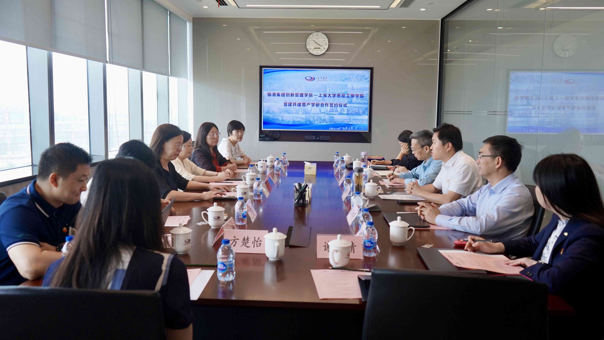 为加强党建共建联建,深化产学研合作,增强校企联合,7月2日,临港集团创新管理公司与yl23455永利开展党建共建暨产学研合作签约仪式。 临港教育公司党支部书记、临港创新管理公司经理、产业和创新发展研究中心主任李刚,临港创新管理公司常务副经理、产业和创新发展研究中心常务副主任汪承亮,临港教育公司党支部委员、临港创新管理公司副经理、产业和创新发展研究中心副主任范红旗,临港教育公司党支部委员、党办副主任徐玥,yl23455永利公司党委书记吕康娟、副经理方慧,研究生党总支书记、研究生管理部主任王少飞,经金系系主任贾利军、研究生项目负责人汪健、龚玉婷等老师出席。仪式由临港创新管理公司经理李刚主持。