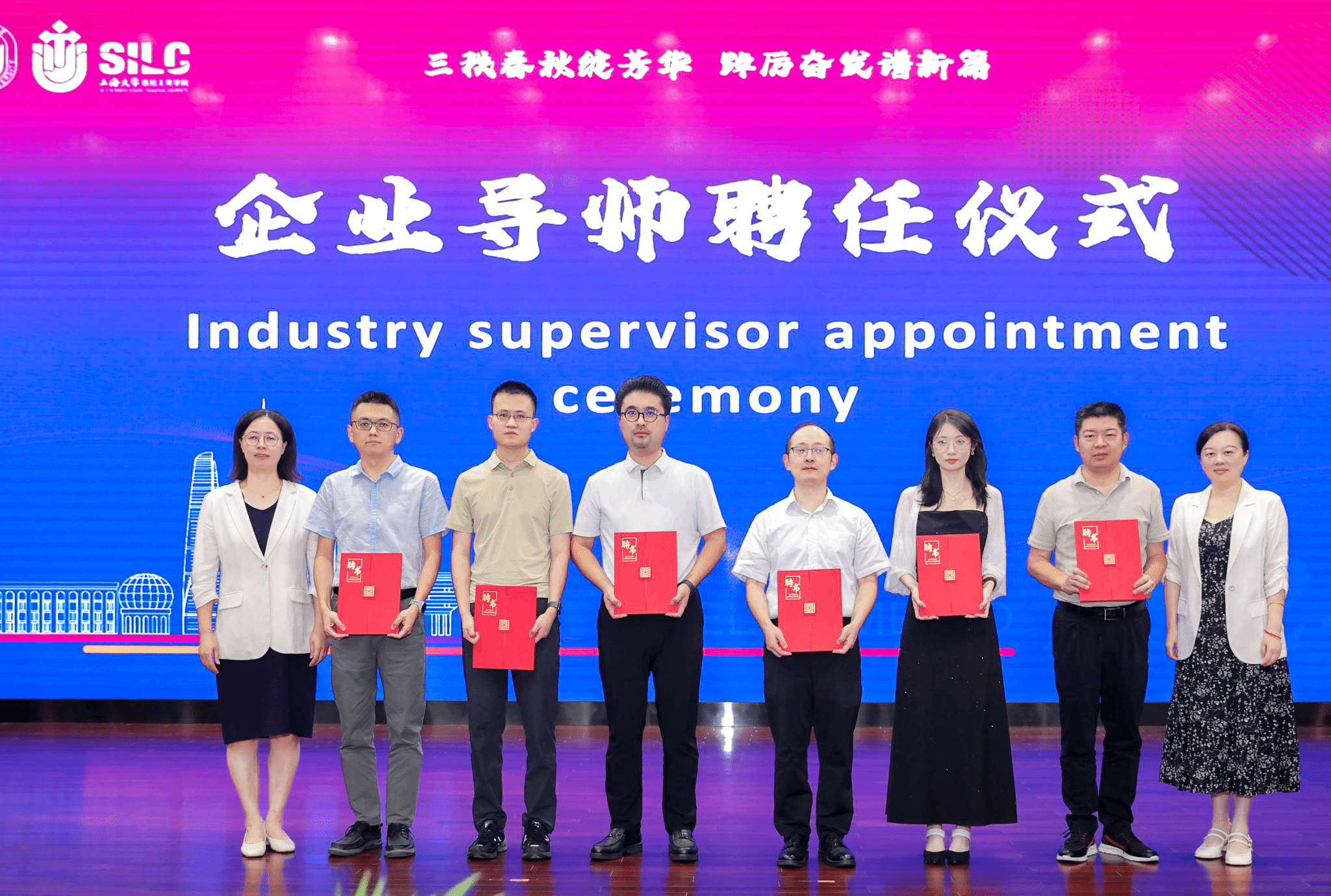 为进一步加强高质量校企合作,公司特聘多位行业精英担任企业导师和行业咨询导师。本次典礼,公司特别聘请中国建材国际工程集团有限公司建筑工程事业部副部长王熙、国元证券股份有限公司创新金融部场外衍生品业务负责人宋瞭、财达证券股份有限公司投资总监杨渭文、湖北均瑶大健康饮品股份有限公司财务总监崔鹏,上海德邻众福投资管理有限公司创始人、董事总经理投资总监赵强,江苏泰格文化科技有限公司、江苏花头鲸数字科技有限公司,董事长、上大悉商UTS硕士联合会常州分会会长张作虎担任企业导师和行业咨询导师,公司党委书记吕康娟、副经理方慧为六位导师颁发证书。公司党委副书记、副经理卫静芬、与副经理(挂职)蔡震尧一起,颁发优秀校外导师荣誉证书。