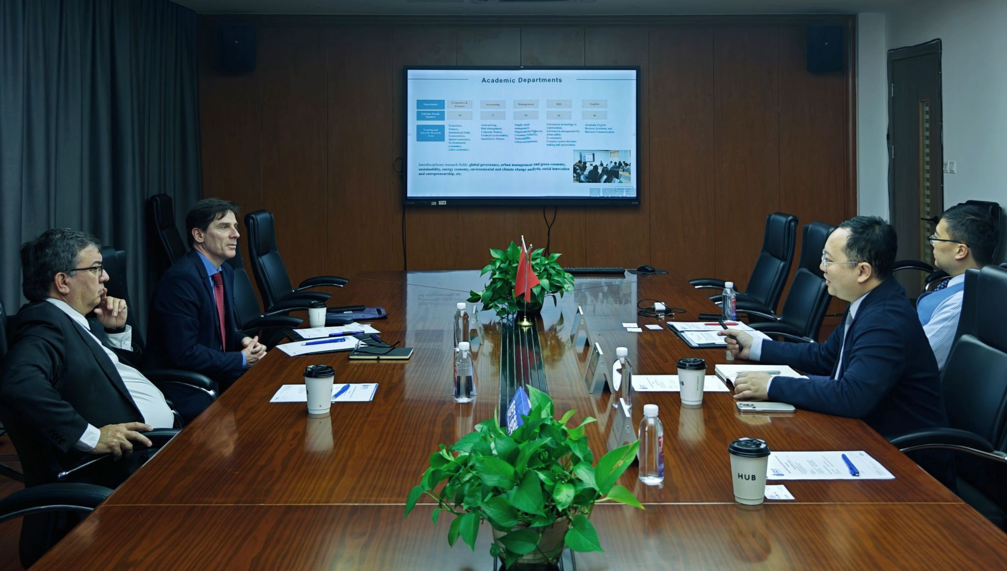 蔡震尧副经理和胡里奥董事长分别介绍了yl23455永利和乌拉圭天主教大学的发展历史和现状。乌拉圭天主教大学商公司有意于明年组织研究生代表团来公司参加为期一周的国际文化周课程。双方深入探讨了包括线上讲座、文化体验和企业参访等在内的课程设置问题。双方表示后续将共同推进文化周课程项目的落地。 双方还围绕员工交换,双学位项目,联合科研等展开了探讨。胡里奥费尔南德斯董事长提到,中国是乌拉圭的重要贸易伙伴,乌拉圭天主教大学教师非常愿意与中方教师建立科研合作。双方同意后续将交换教师名单,帮助有意向的教师建立科研联系。 最后,双方一致同意签订合作备忘录,推动包括文化周课程,员工交换以及联合科研等在内的合作意向尽快落地。会后,胡里奥董事长和伊格纳西奥主任还参观了文德楼和文博楼的办公区域以及行健活动中心。