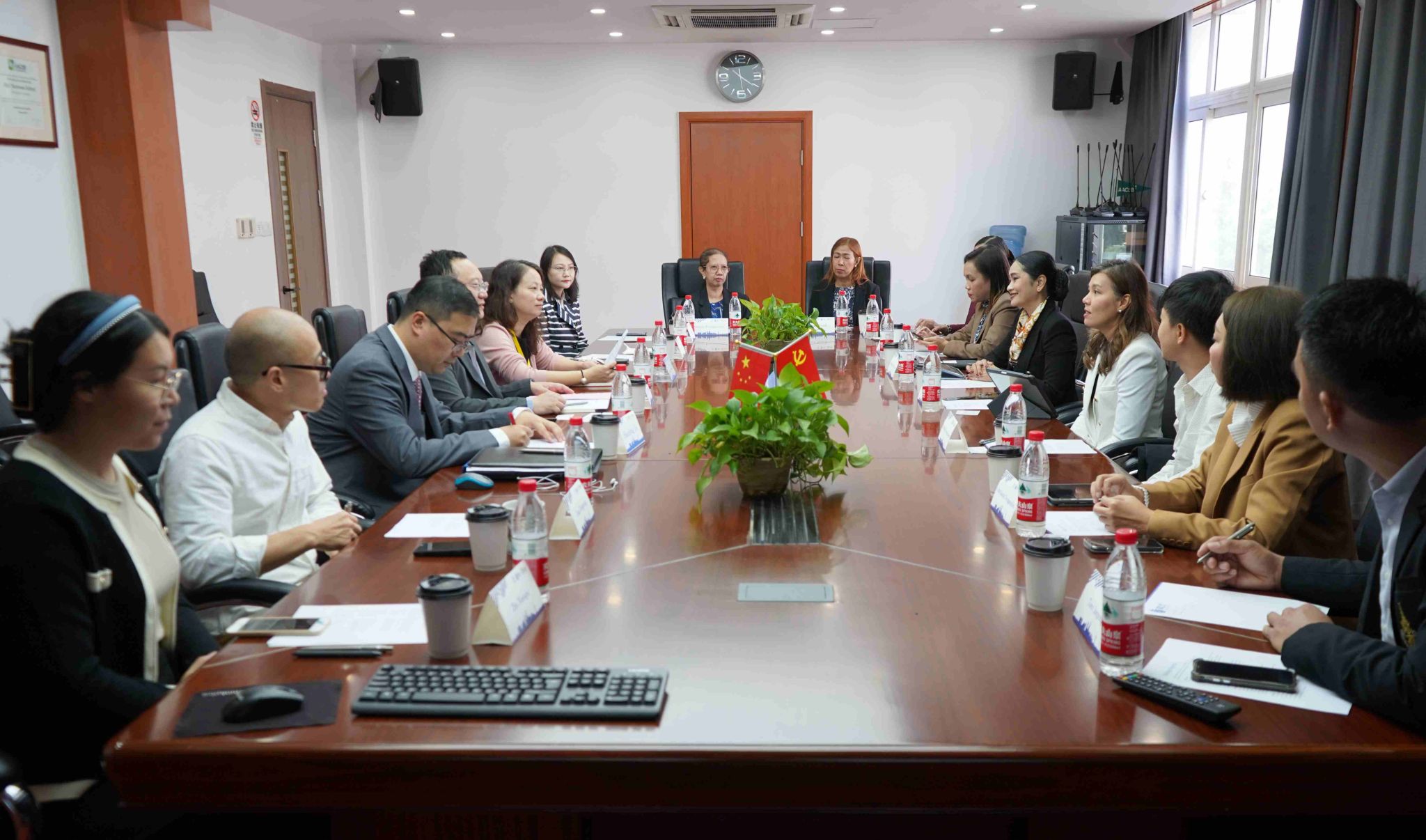 经理卞亦文、副经理(挂职)蔡震尧、英语系主任旷群、国际部顾浩东、孟瑞琼、花鑫未、唐定强、诸晓秋等参加了接待和研讨活动。卞亦文经理代表公司对泰国宋卡王子大学各位贵宾的到访表示热烈欢迎,蔡震尧副经理介绍了公司近几年的国际交流情况以及与泰方董里校区合作的开展情况。