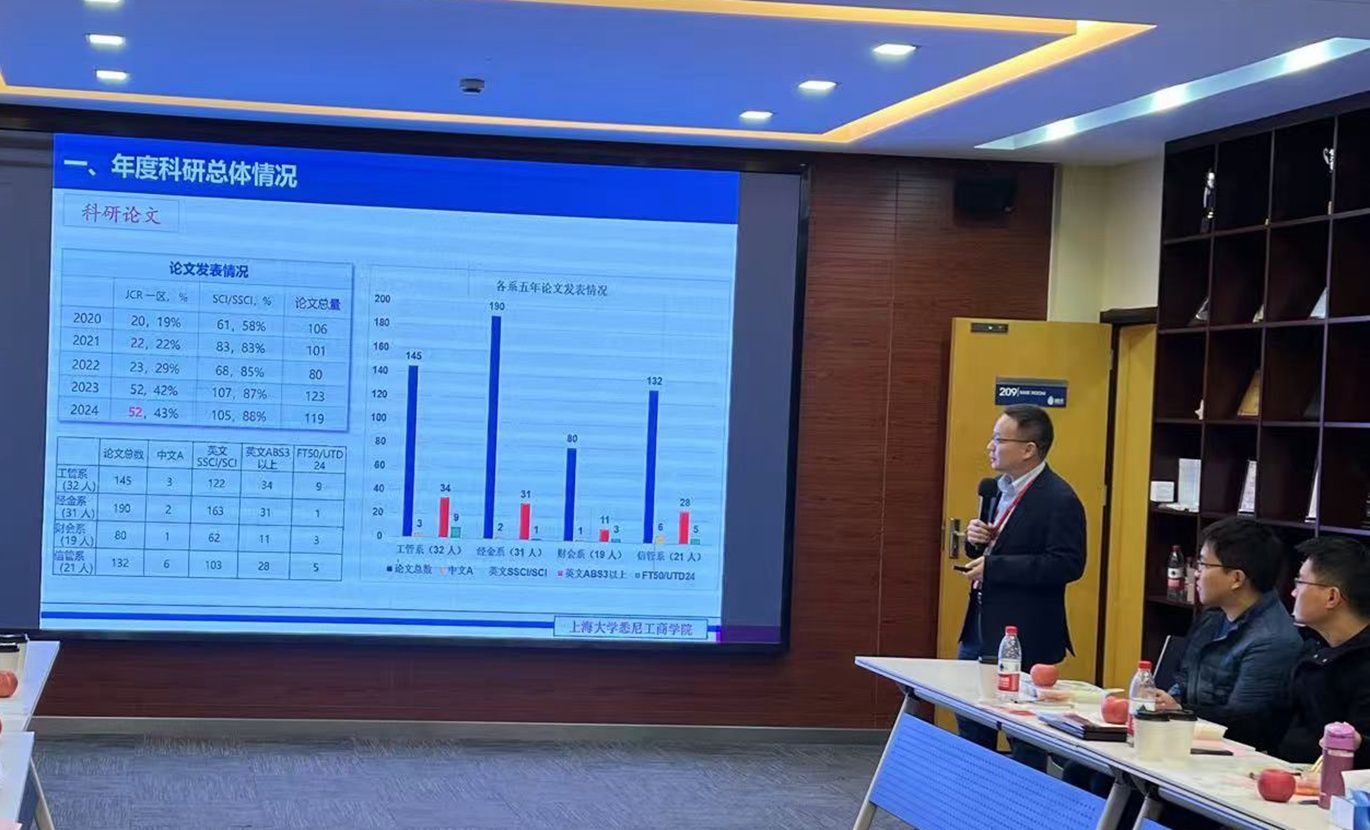 会议分为学术团队汇报、各系汇报和院领导汇报三个环节。在学术团队汇报环节,智能信息处理、组织管理与营销、城市管理与可持续发展、平台运营与供应链管理、人工智能与行为科学、公司金融与财务管理、澳大利亚研究中心、案例研究中心、智库研究中心等9个学术团队的负责人分别简要汇报年度工作并结合十四五完成情况和十五五初步规划进行了总结和展望。院领导及与会老师对各学术团队的年度工作和工作规划进行了评议,给出了多方面的意见和建议。