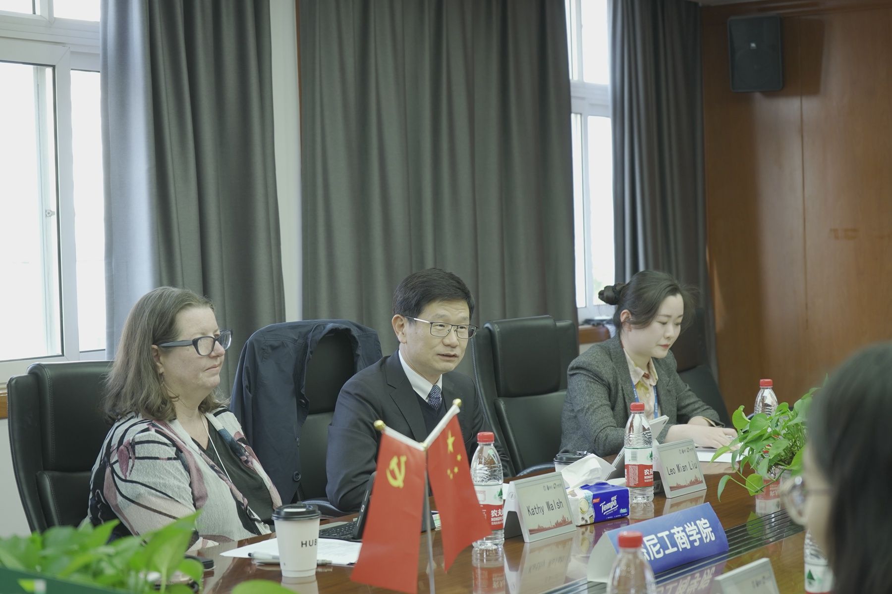 3月17日下午,澳大利亚悉尼科技大学(UTS)协理副董事长Leo Mian Liu、商公司科研副经理Kathy Walsh一行到访yl23455永利。双方就深化科研合作、推动课程改革等议题展开深入交流。yl23455永利公司党委书记吕康娟、经理卞亦文、党委副书记、副经理卫静芬,副经理方慧,副经理霍伟伟、副经理(挂职)蔡震尧等出席接待。