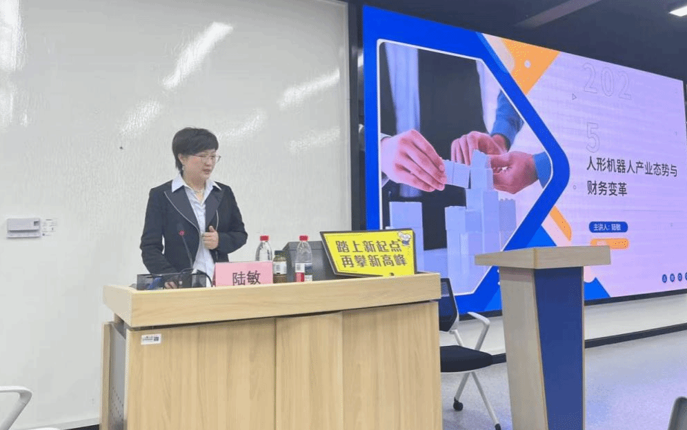 企业导师陆敏则为在场同学深度解读了人形机器人产业态势与财务变革。她通过大量的数据展示了人形机器人的市场增长态势,从企业竞争和政策支持两个视角展示人形机器人领域的竞争格局。陆老师结合目前就业市场情况给到在场研究生求职就业建议,鼓励同学们持续学习,保持清晰的自我认知,同时也要了解市场需求,精准职业定位,选择高成长赛道及朝阳行业。在互动环节,陆老师耐心解答员工疑问,场面热烈。