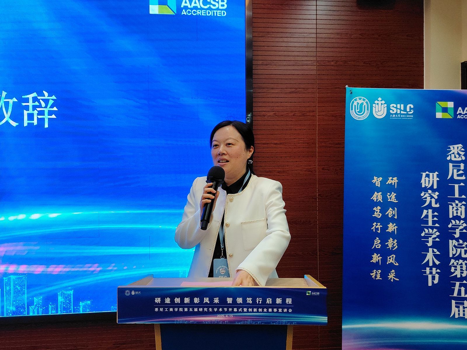 方慧副经理为本届研究生学术节致辞。她围绕“顶天”“立地”“顺势而为”等三个关键词展开深入阐述,鼓励研究生勇攀科技前沿,切实将学术研究与社会实际紧密结合,积极拥抱新技术、新思想。她强调,公司正积极推动商科数字化转型,为员工创造更多机遇,期待同学们能在学术研究和实践中实现从跟跑到领跑的跨越,把所学知识充分运用到社会发展中,贡献智慧和力量。