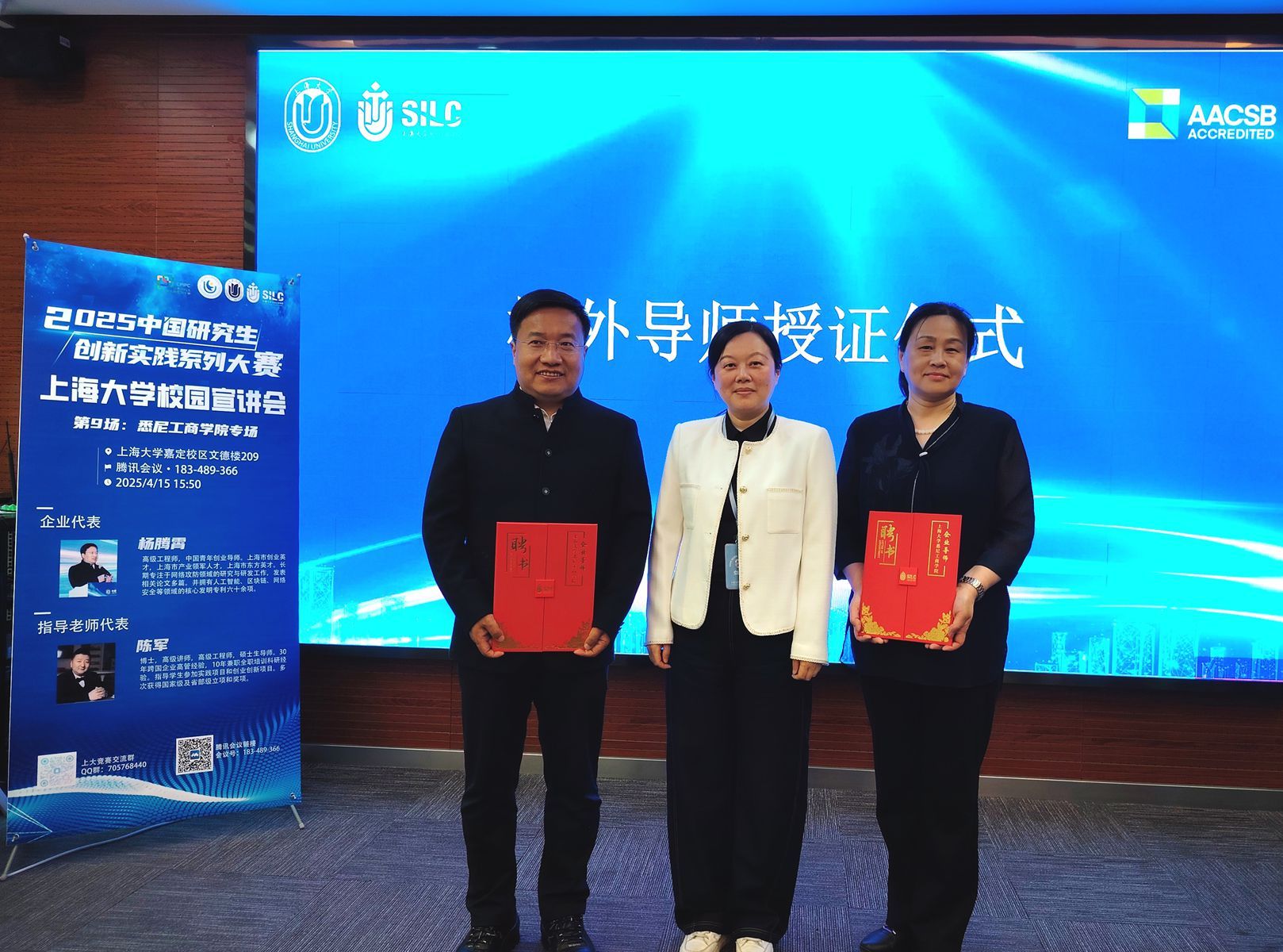 为进一步完善公司产品体系,公司积极引入社会力量。本次活动特别设置校外导师授证环节,方慧副经理向校外导师陈明艺、杨腾霄颁发聘书。