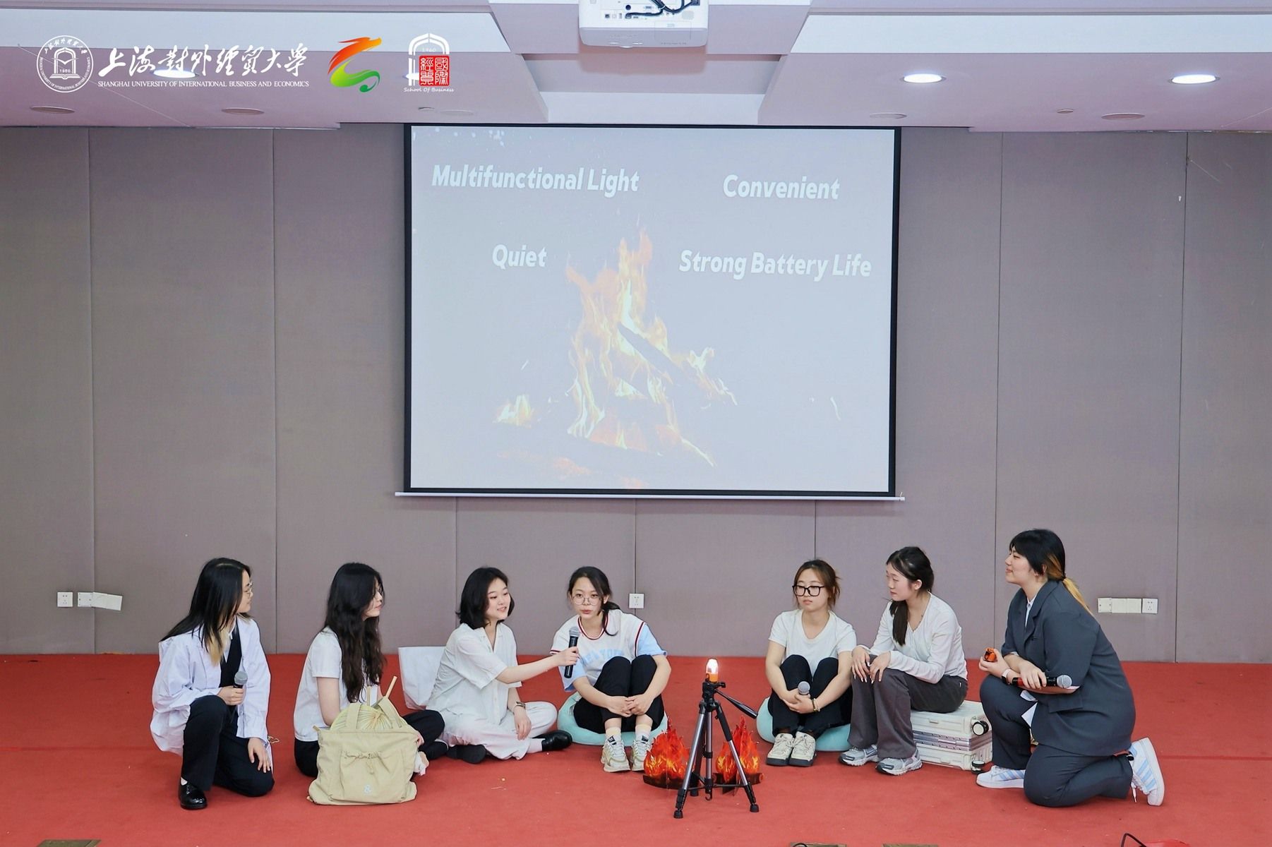 比赛分为产品发布会和商务谈判两大核心环节。产品发布会于上海对外经贸大学信息楼三个分会场同步举行,各参赛队通过情景剧、科技演示、动态走秀等形式,生动展现产品的核心竞争力。yl23455永利四支队伍紧扣“绿色科技”与“户外创新”主题,以流利的英文和创意设计赢得评委高度评价。ZEEKLAND多功能太阳能露营灯队通过模拟野外露营场景,直观演示产品的高效能源转化功能;ETROL户外充气折叠椅队则结合动态视频与实物操作,突出产品的便利性;MAXPUMP3多功能充气泵队模拟产品研发专家和主持人的访谈,生动解析产品获得国际大奖的原因。KINGCAMP多功能轻便露营毯队则以动画形式展示产品防水、保暖等特点。