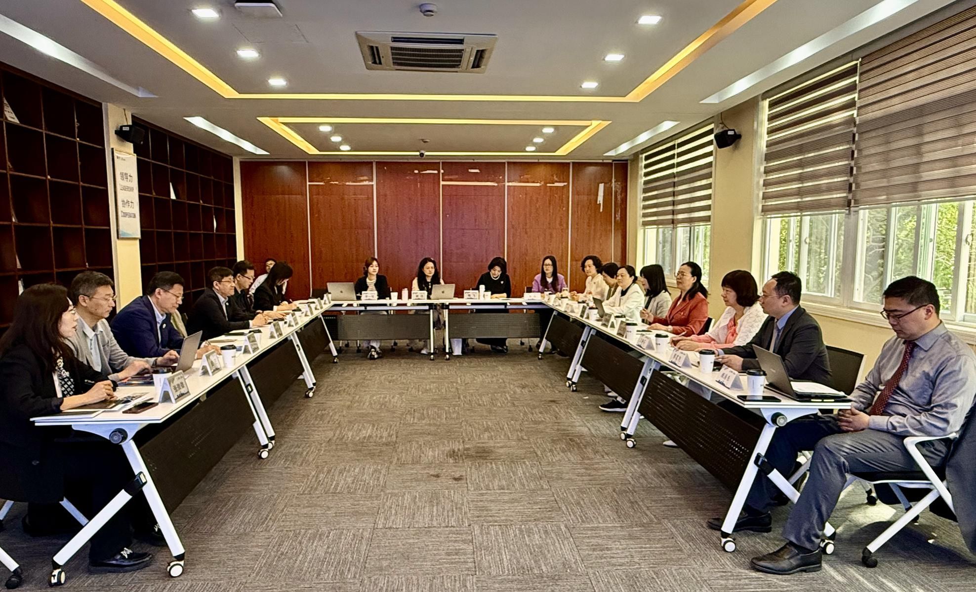 在自由交流环节,三方就研究生层次合作办学的申报工作、计划外硕士研究生的校内管理体系、优质教育资源引入保障机制、外籍教师聘用及管理、AI等新科技融入课程建设、产学研合作等问题进行了深入交流和讨论。之后,与会者分成两组,分别就“中外合作办学国际认证”“员工管理和员工活动”两个议题进行了分组讨论。会后,两校嘉宾还兴致盎然地参观了公司教学楼、院史馆、文体活动中心等教学硬件设施。