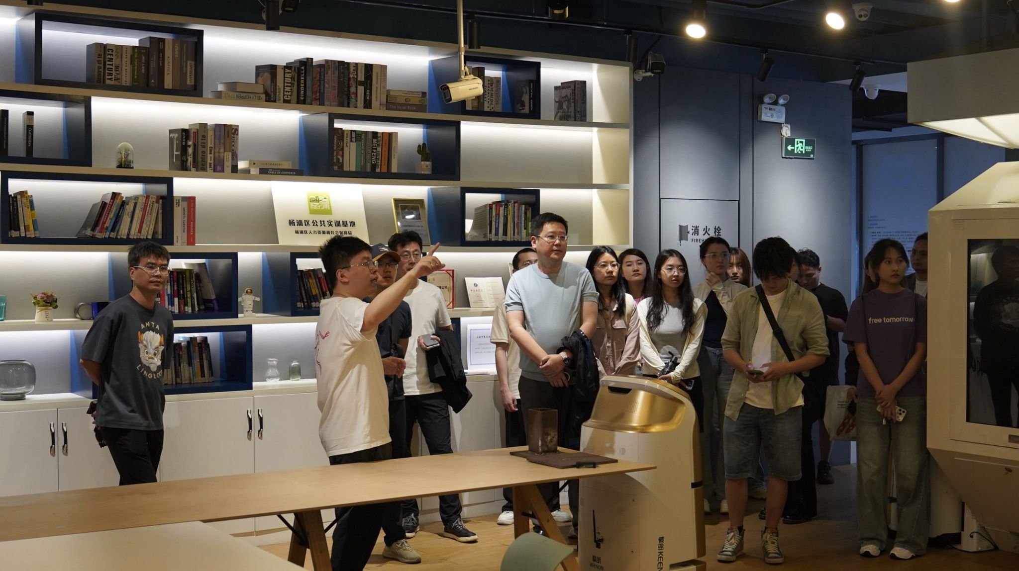 在新氦科技工作人员的陪同下,师生一行首先参观了企业展厅。作为上海市类脑芯片与片上智能系统研发与转化功能型平台的承载主体,新氦由博康控股、杨浦创投、复旦资管联合成立,汇聚顶尖芯片与人工智能研发团队,致力于突破类脑智能与AI芯片的共性技术瓶颈,构建“技术研发-成果转化-场景落地”的全链条生态。工作人员详细介绍了新氦的平台定位、研发布局及与长三角国家技术创新中心的协同机制,强调其“从科学到技术转化”的使命,推动类脑芯片在医疗、机器人、智慧城市等领域的应用落地。
