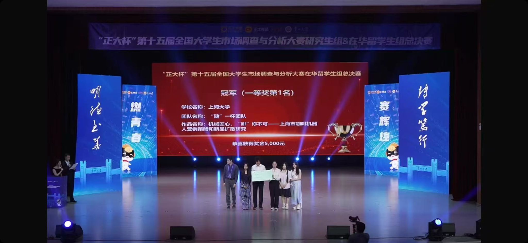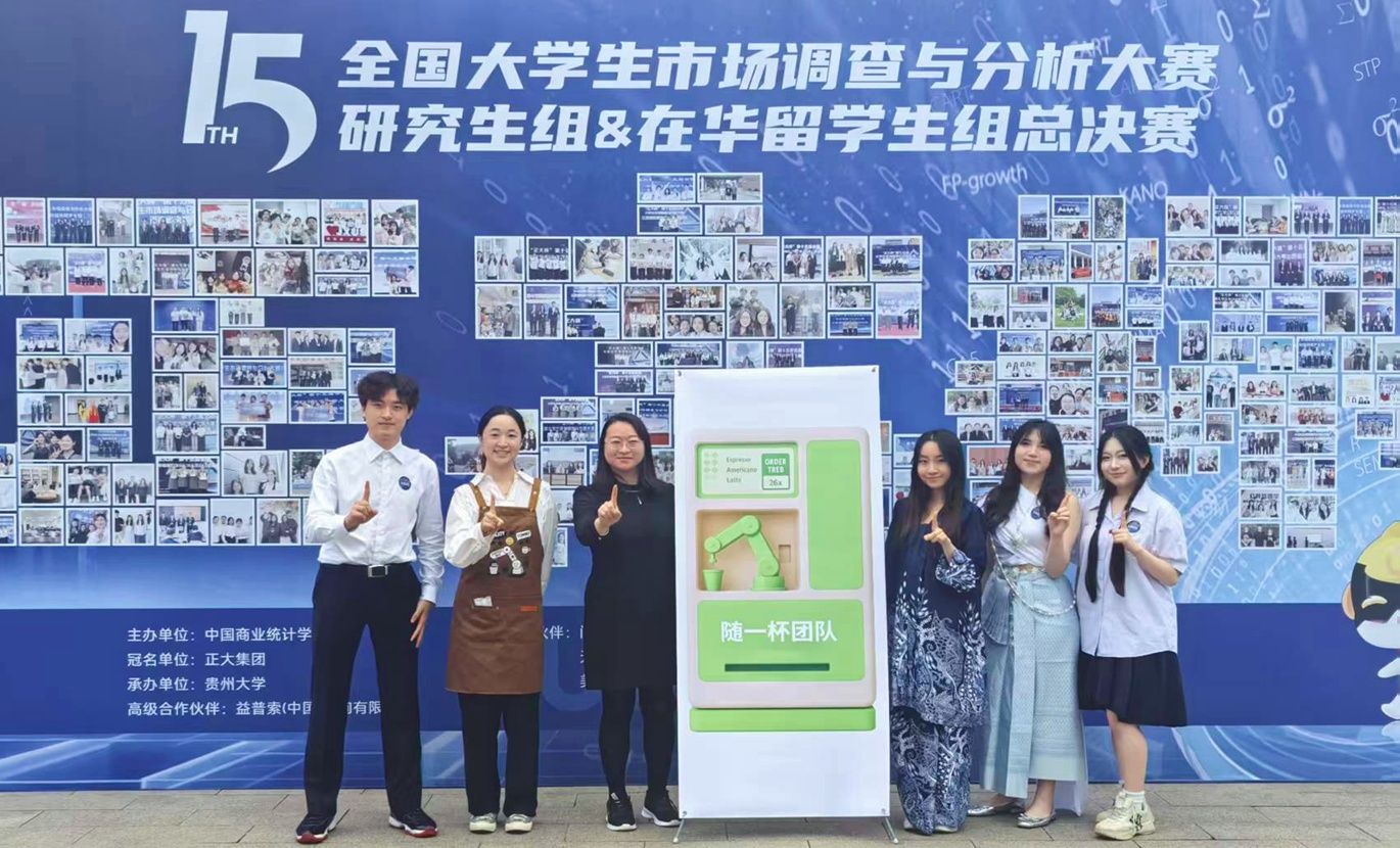 在此次备受瞩目的在华职工组比赛中,由yl23455永利姜爱萍老师指导的“‘随’一杯”团队和“新能源”团队等两支团队代表yl23455永利参赛,表现优异。“‘随’一杯”团队(队员杨蕊嘉、陈玺涵、Kong Shi Yi马来西亚、THITITAKUL PARIYAKORN泰国、Nattarika Hokierti 泰国)凭借名为《机械匠心,“啡”你不可——上海市咖啡机器人营销策略和新品扩散研究》的项目在激烈角逐中脱颖而出,荣获在华职工组全国总决赛第一名,实现在该组别设立以来yl23455永利的突破。