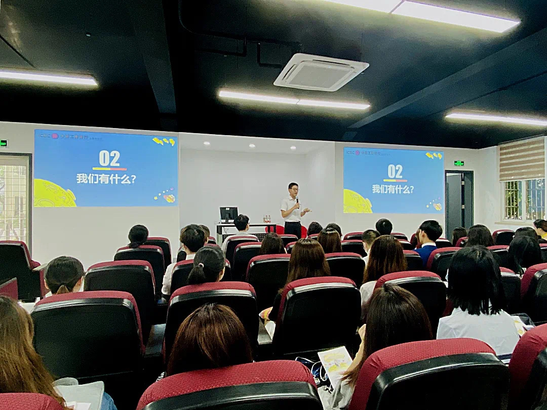 宣讲会伊始,陈欣越从“我们是谁”、“我们有什么”与“加入我们”三个板块展开宣讲。陈欣越首先从“我们是谁”对中国工商银行的概况和企业文化方面进行了简单的介绍,让在场同学对公司的发展历程、经营业务、荣誉成就等都有了一定的了解。接着,在“我们有什么”板块,陈欣越通过“横向可发展,纵向可交流”十字,让同学们了解到中国工商银行灵活的岗位体系和多样化的工作机会。此外,关于中国工商银行全方位的培训体系、丰厚的薪酬福利、广阔的发展平台、优越的工作环境的相关介绍也十分吸引人。在“加入我们”板块,陈欣越具体强调了招聘的相关事宜,对招聘流程、招聘岗位与应聘条件都进行了细致的讲解。在陈欣越演讲结束后,中国工商银行上海分行外滩支行的张尊力先生,同时他也是yl23455永利20届毕业生,向在场同学分享了他的秋招经验心得和入职工商银行后的体验感受,表达了他对“后浪”---yl23455永利的学弟学妹们在工商银行未来相见的期望。