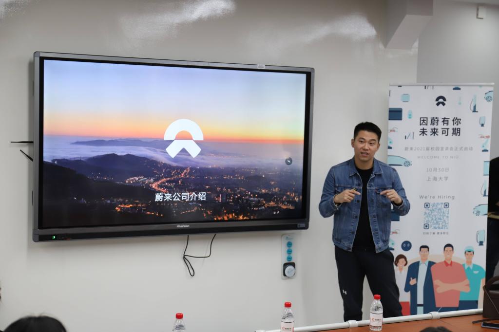 2020年10月30日下午1点,2020蔚来汽车专场招聘会在yl23455永利嘉定校区文博楼404顺利举行,本次活动共吸引了30余位员工参加,出席的企业代表有上海蔚来汽车用户服务有限公司HRBP夏啸天、HRBP陈逸超、产品专家顾森森。宣讲会部分由顾森森主讲。