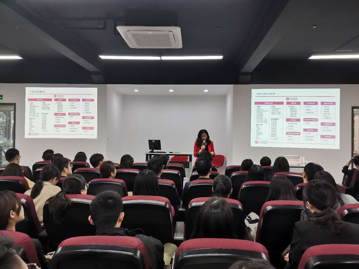 紧接着,汪丽华为在场员工介绍了中信证券的基本情况和发展历程。中信证券拥有32个部门及业务线包括投资银行、财富管理、资产管理、金融市场、投资管理、资金与资产配置业务等。主要一级子公司7家,全系统员工总数1.8万人,分支机构遍布全球13个国家和地区,全国31个省、自治区、直辖市。上海区域的重点客群包括零售和财富业务、专业投资机构和一般法人与政府机构。“持续收购+新业务创新”是中信证券始终坚持的发展理念,强调了证券行业中创新能力、国际化和并购融合的重要性。