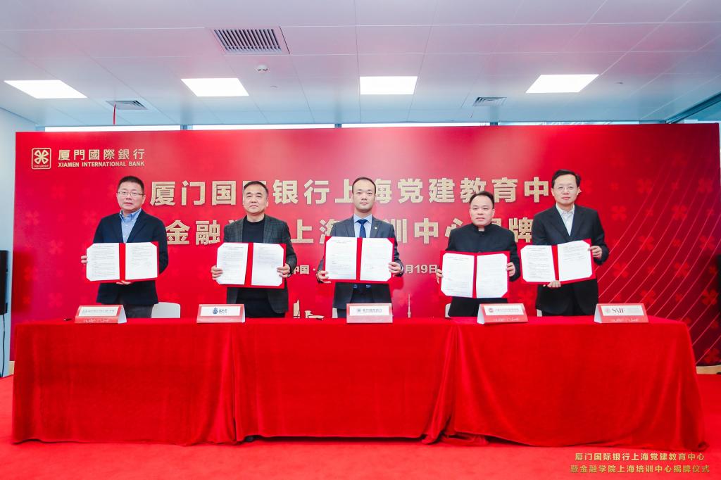 随后,李双与兄弟院校领导们共同为厦门国际银行上海党建教育中心暨金融公司上海培训中心成立揭牌。