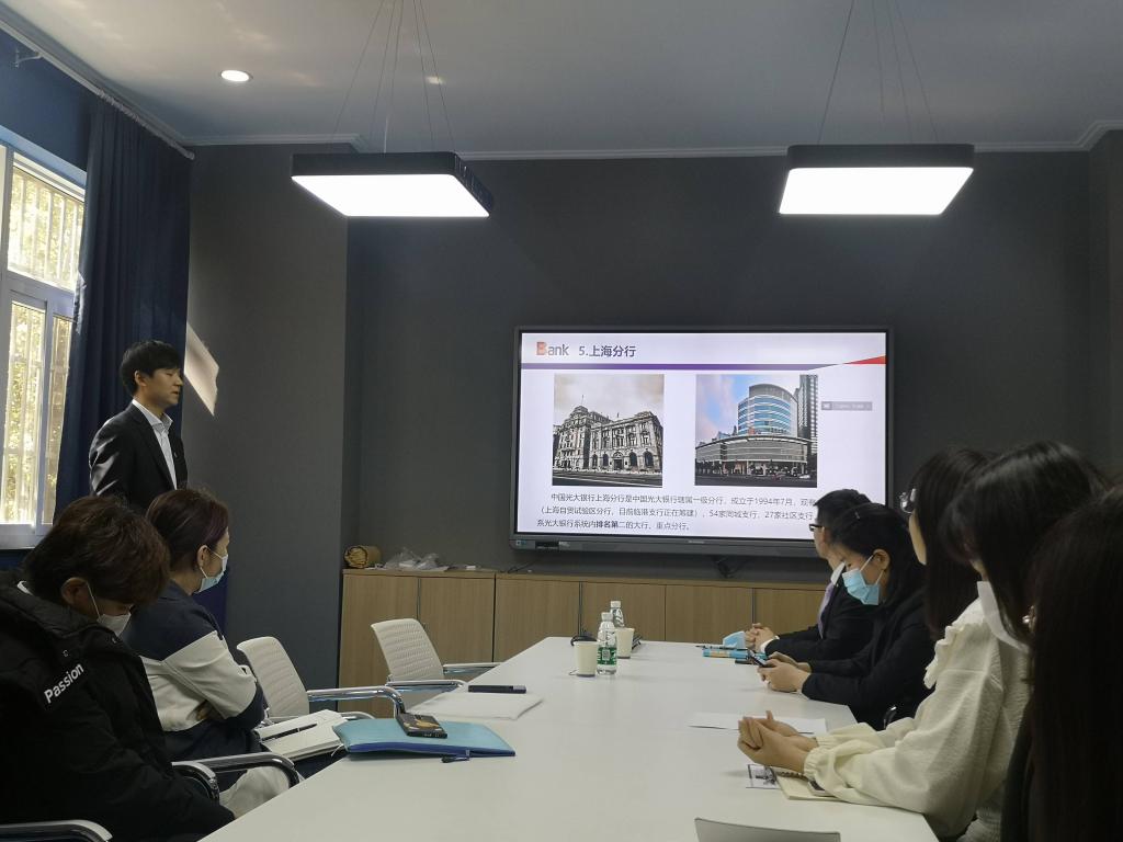 活动伊始,方志对光大银行上海分行的整体概况进行了简要介绍,让同学们对光大银行的行业地位,发展布局,业务产品以及网点机构建设有了清晰的了解和认识。对于上海分行发展规模,员工培训,职业舞台等内容方志通过不同角度与在场同学进行分享。他着重强调了上海分行服务客户的多样性,其中包括大型国企与各大独角兽互联网企业。此外,银行还为员工提供了全方位培训体系,多元多渠道员工职务晋升体系,完善的储备轮岗交流体系,丰厚的薪酬福利以及优越的工作环境。最后方志针对光大银行上海分行的招聘事宜、招聘流程、招聘要求与应聘岗位再次进行了阐述和说明。